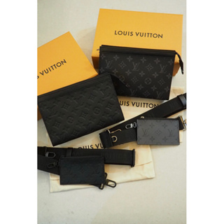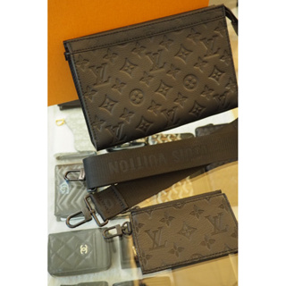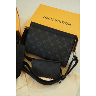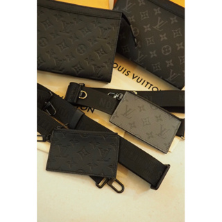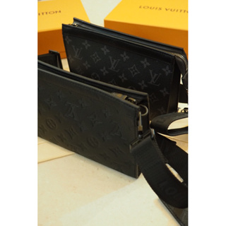 Louis Vuitton LV黑色壓紋、老花 二合一側背包 Gaston 隨身錢包