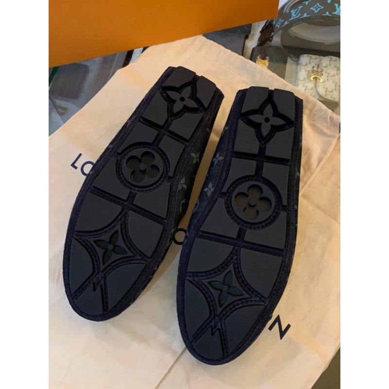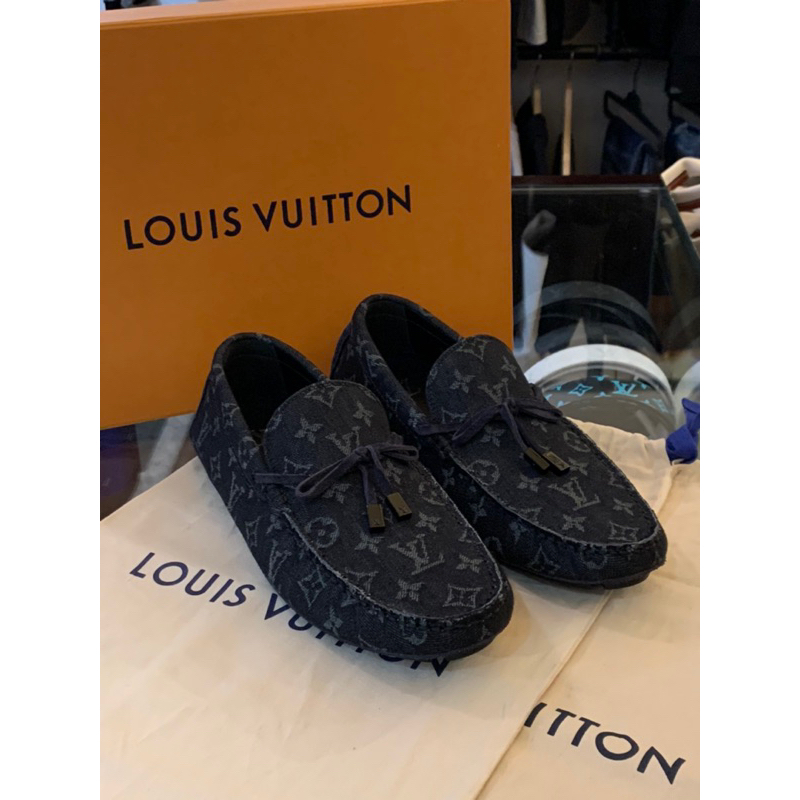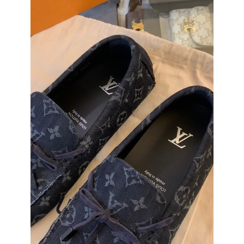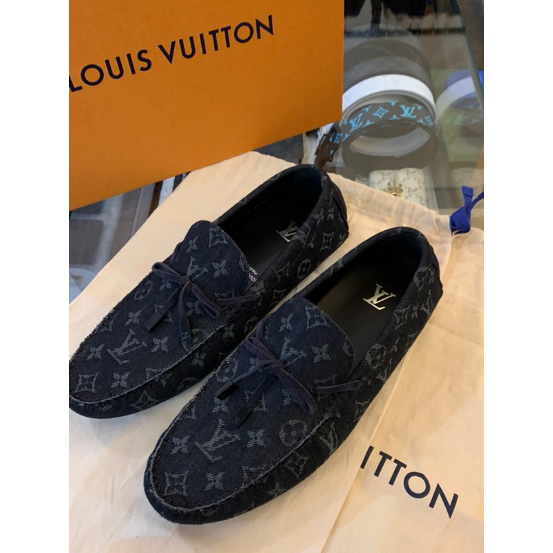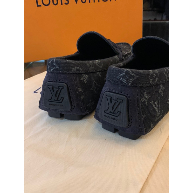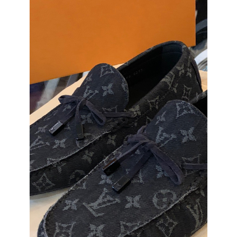 Louis Vuitton LV黑色滿版老花Logo設計 牛仔布 男生 男款 豆豆鞋 現貨