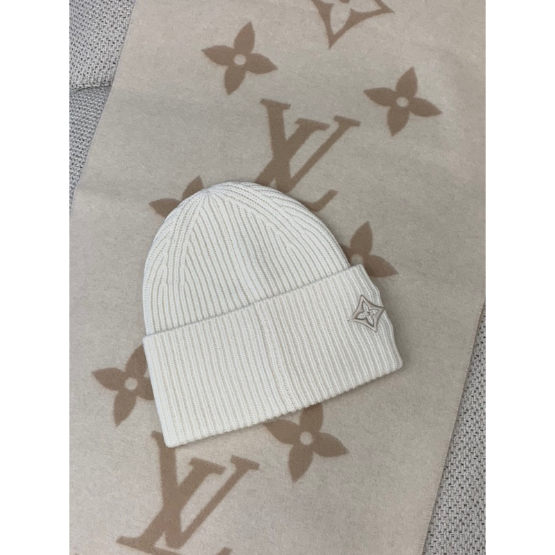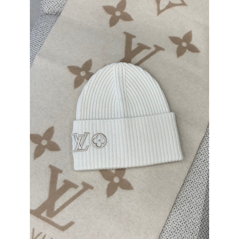 Louis Vuitton LV 刺繡字母 花卉 設計 白色 毛帽
