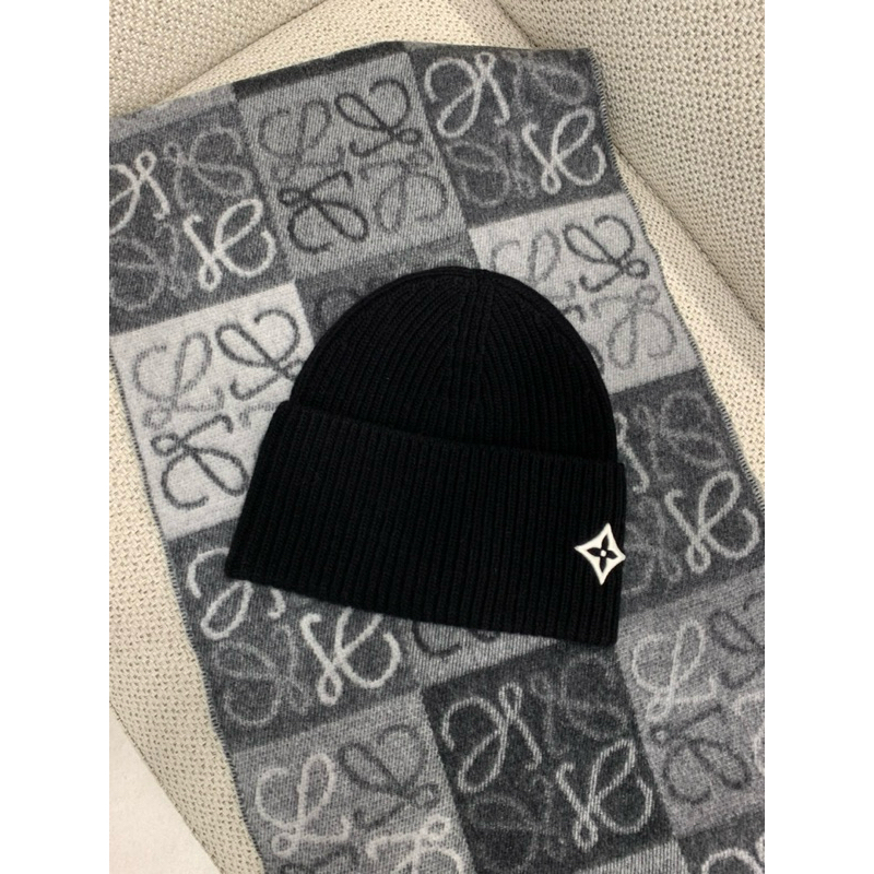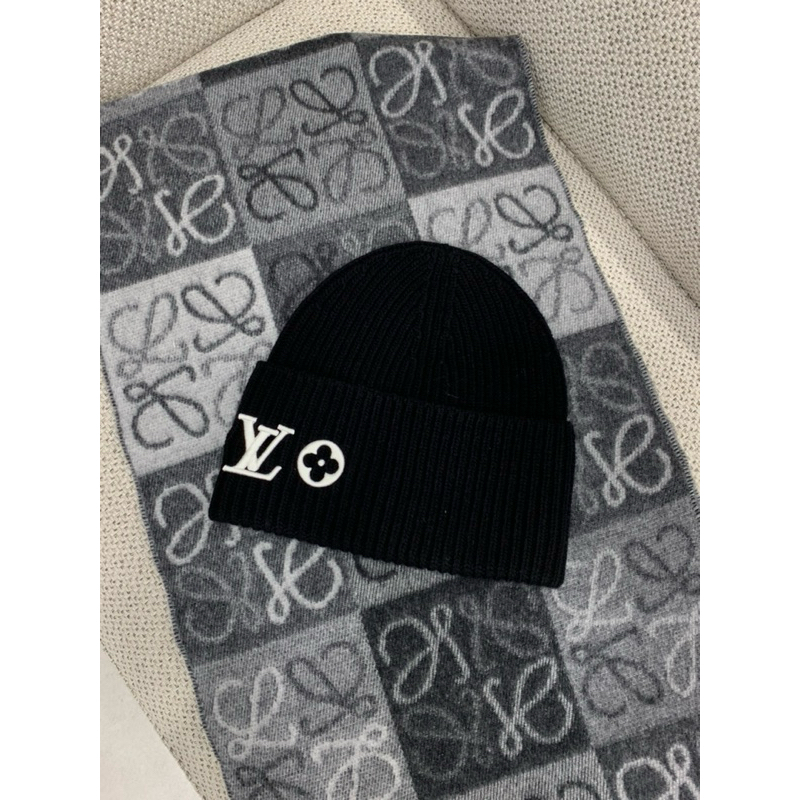 Louis Vuitton LV 刺繡字母 花卉 設計 黑色 毛帽