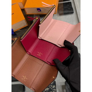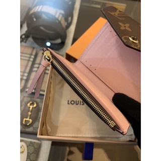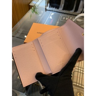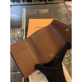 Louis Vuitton LV 經典咖啡老花滿版Logo設計 內裏粉紅 咖啡 桃紅色 三折 短夾