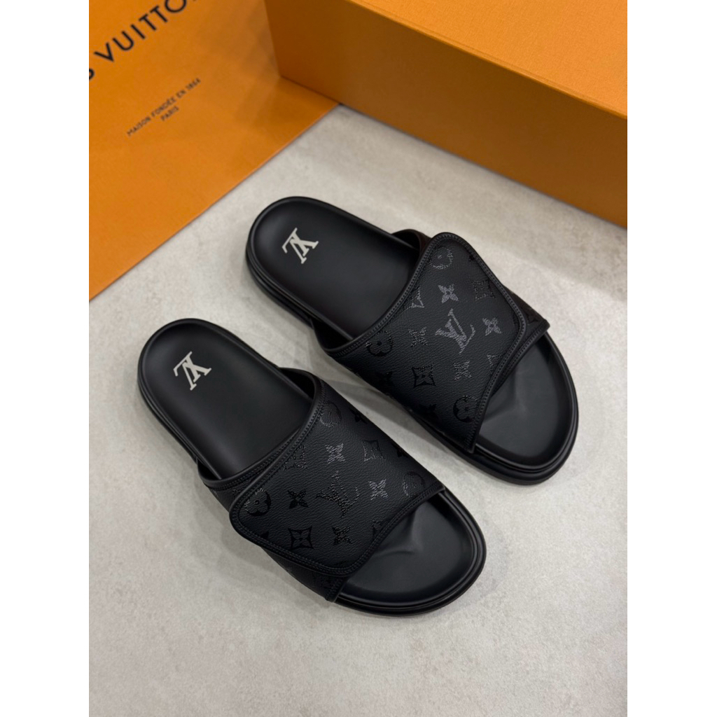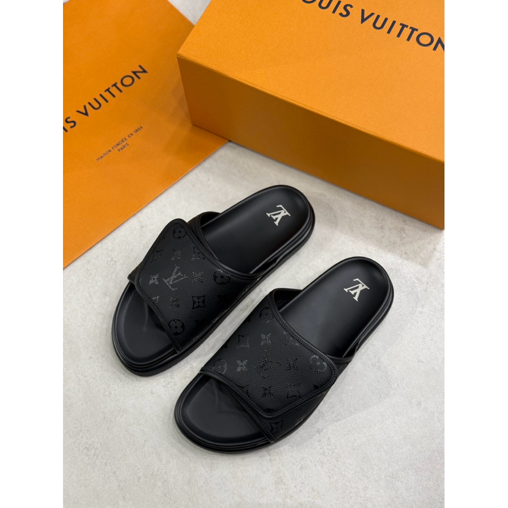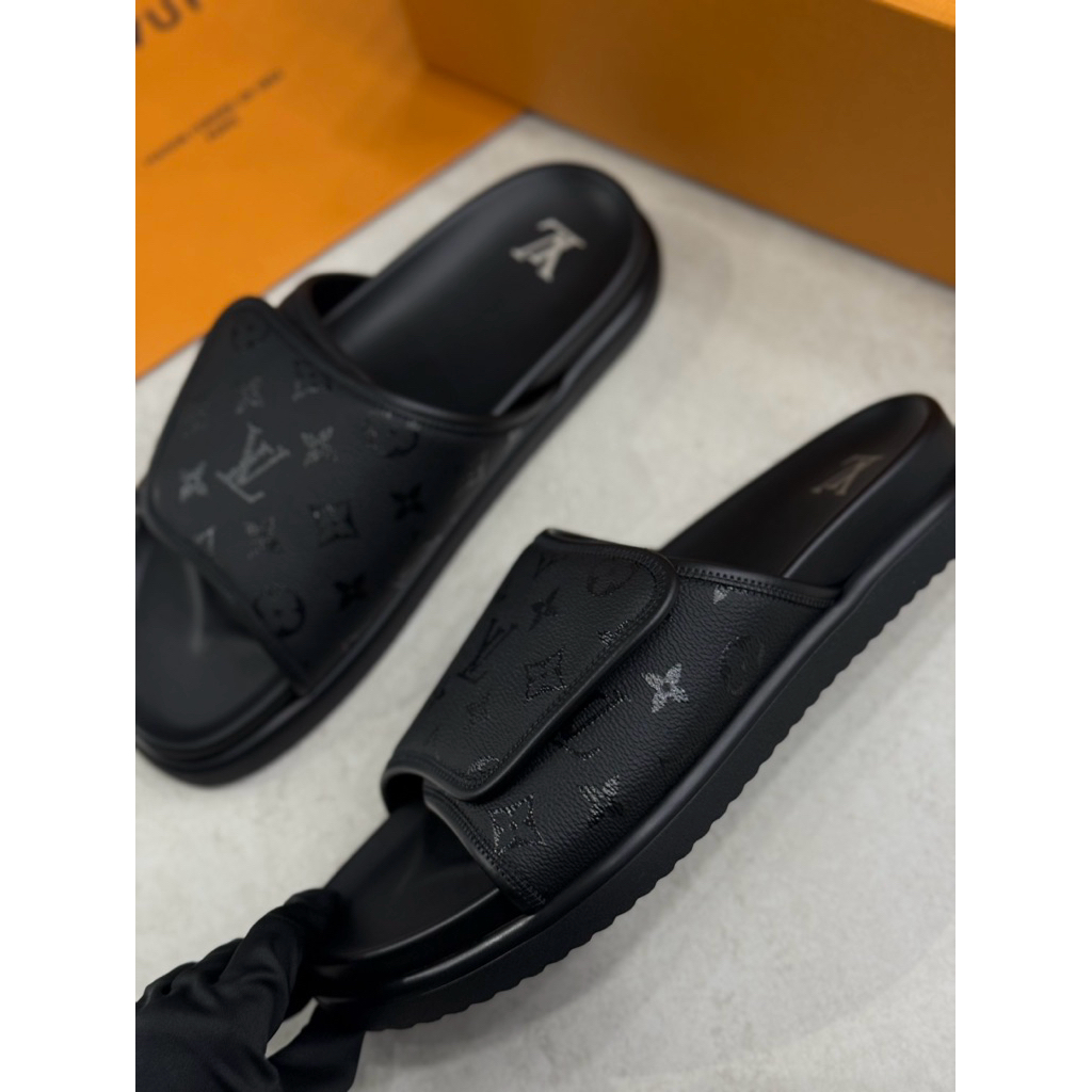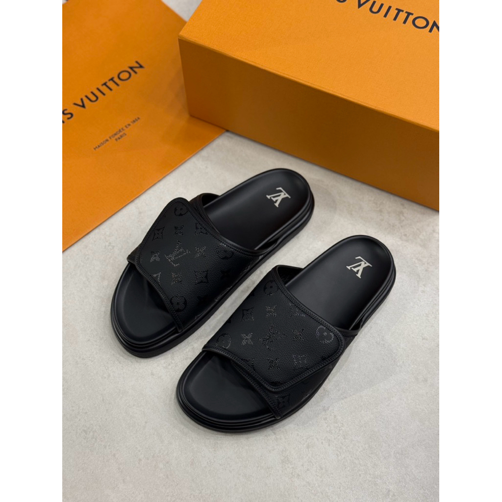 Louis Vuitton LV 經典滿版logo設計 魔鬼粘搭配 男生 拖鞋