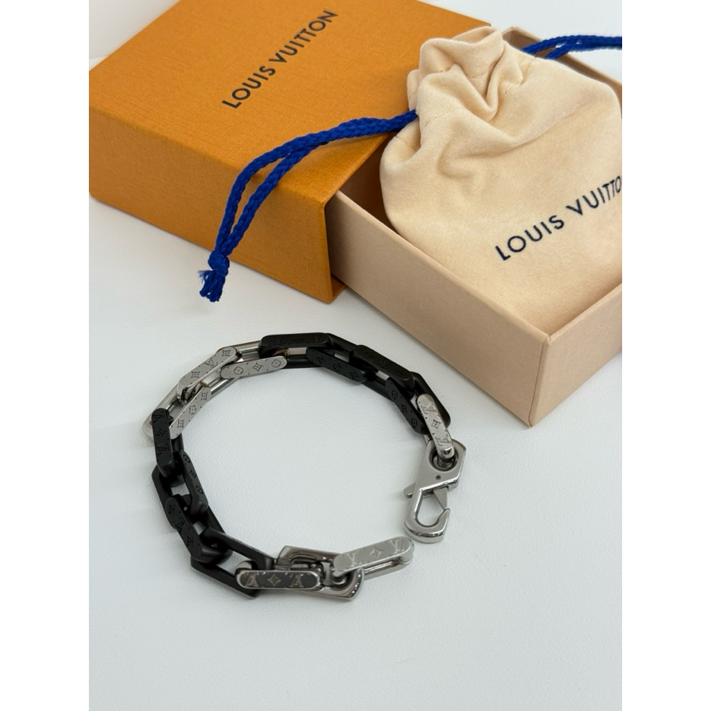 Louis Vuitton LV 經典老花設計 黑銀雙色 男生手鍊