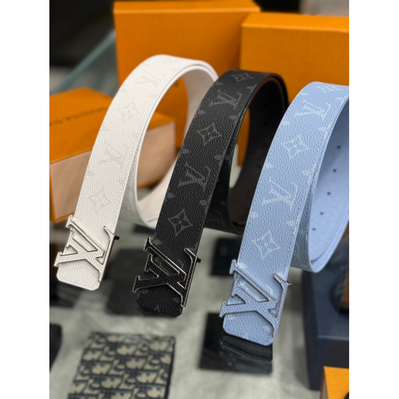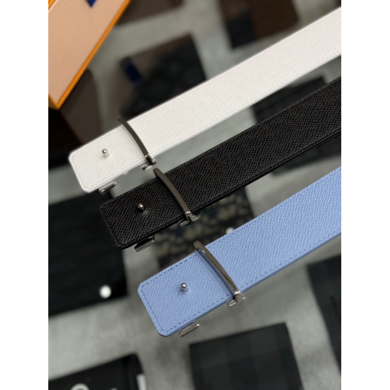 Louis Vuitton Lv 經典 logo 設計 立體設計 黑、白色、天空藍 老花皮帶 男生皮帶