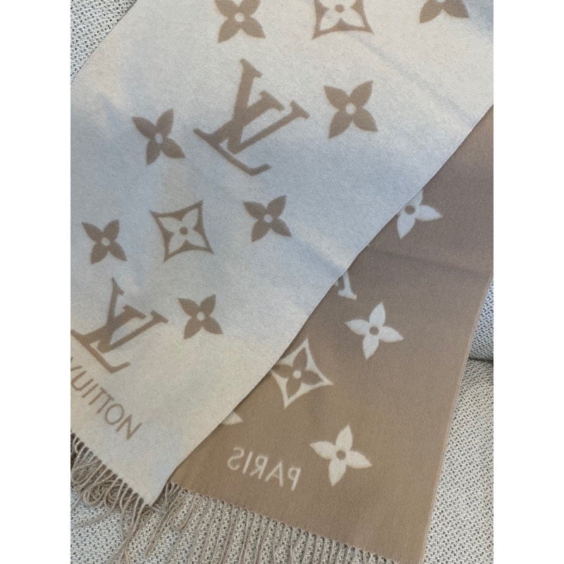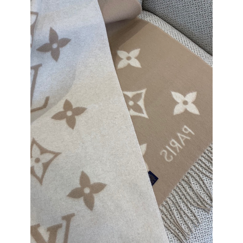 Louis Vuitton LV 羊絨材質 流蘇 圍巾 奶茶色