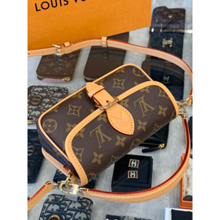 這款Nano Diane是Diane手袋迷你版本,以Louis Vuitton標誌性的Monogram帆布打造。此手袋點綴天然皮革飾邊,彰顯獨特的圓形翻蓋及腰帶式磁扣設計,適合放置手機等必備物品,另外亦配備可拆式手柄及可調節長度的可拆式肩帶,可作多種方式攜帶。