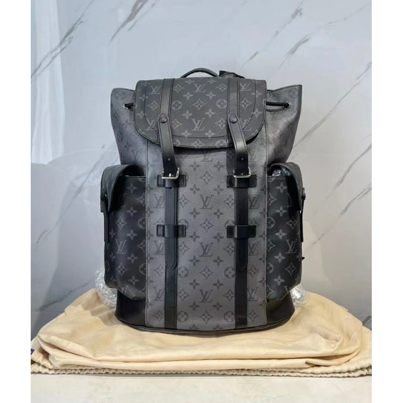 Louisvuitton Lv 黑灰色 、咖啡色老花拼接配色 男生後背包