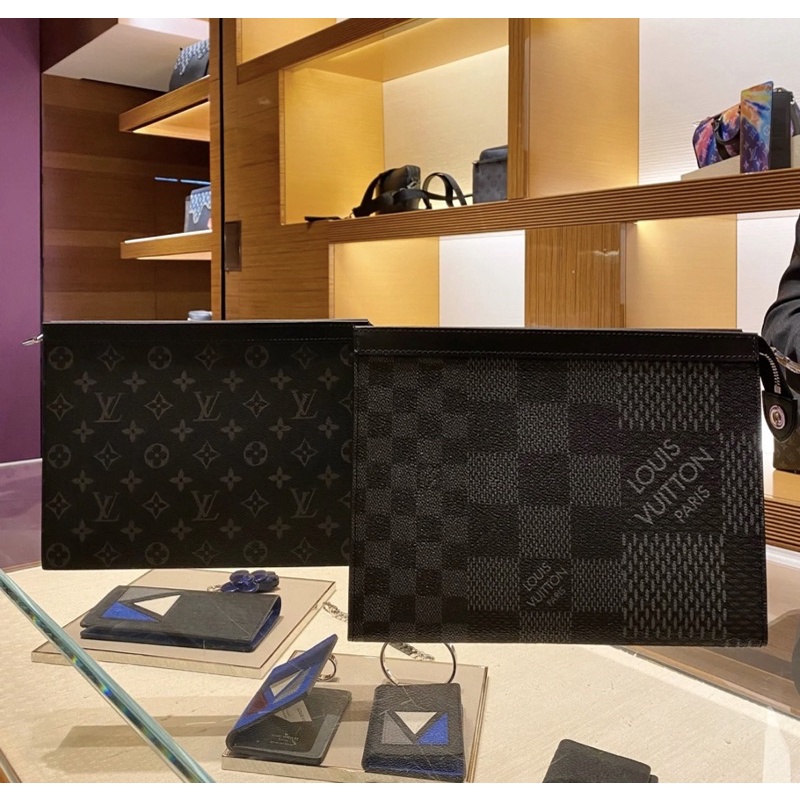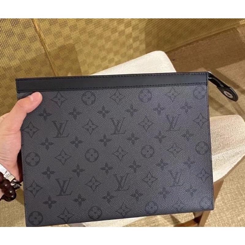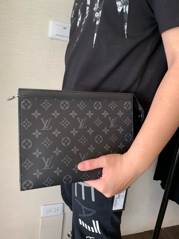 LV 經典滿版老花Logo 黑色 男生 男款 手拿包