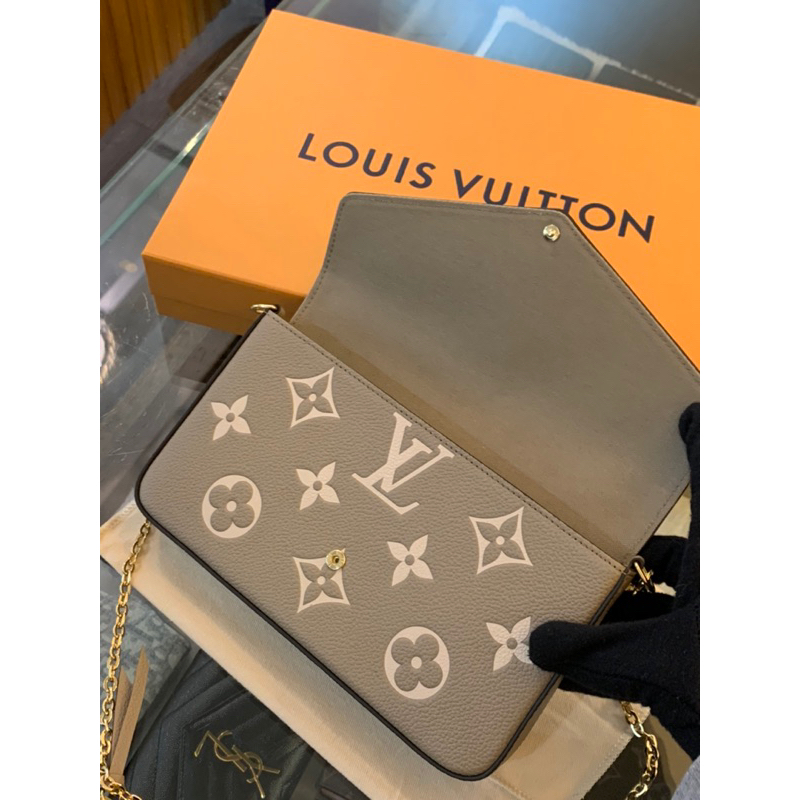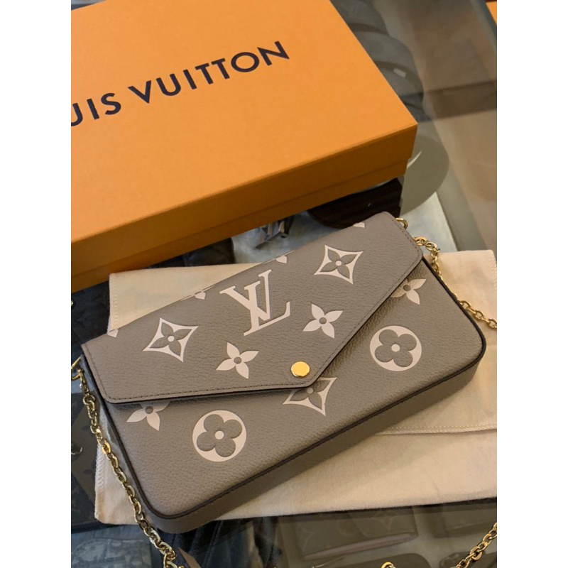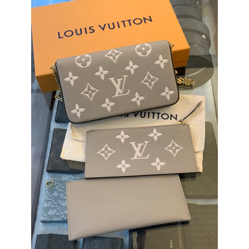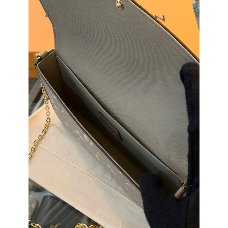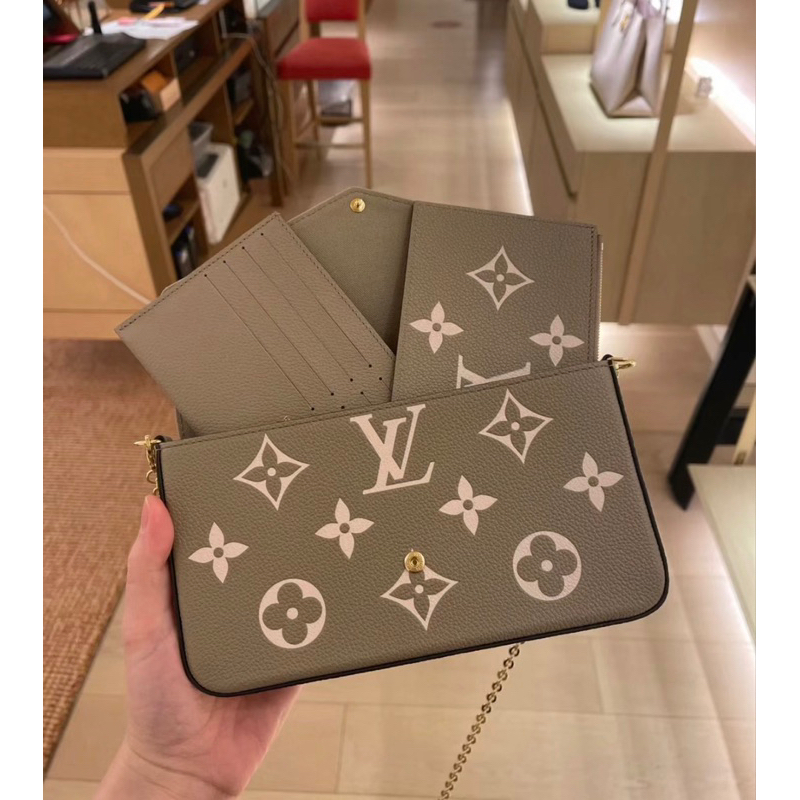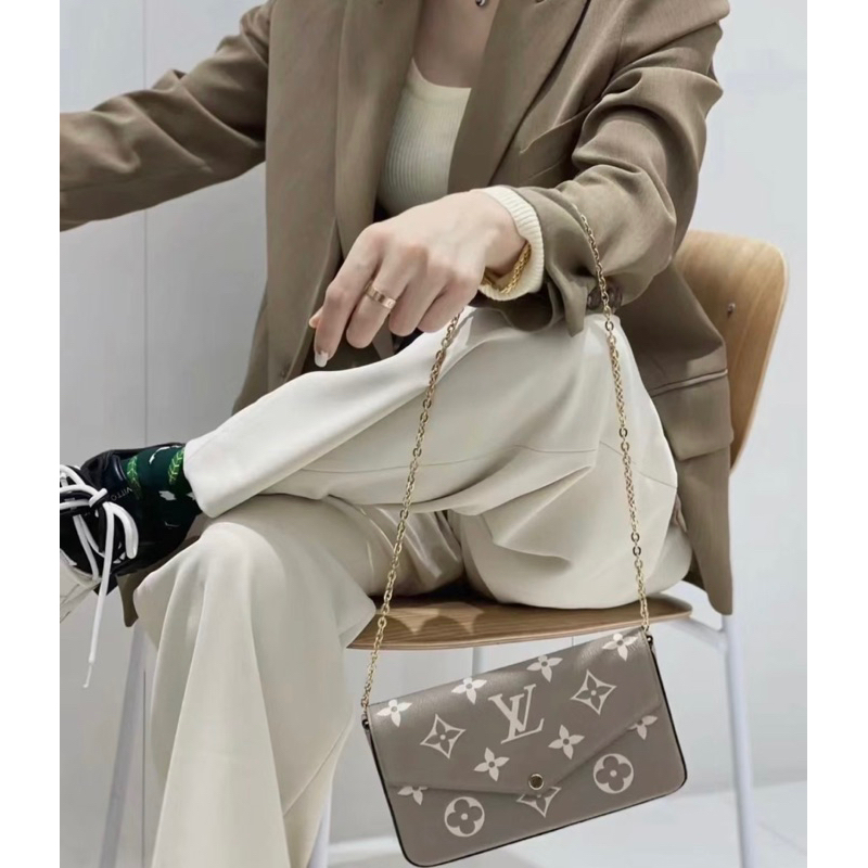 LV 經典 大象灰 壓紋 設計 實體超美 女生鍊包 側背包 三合一
