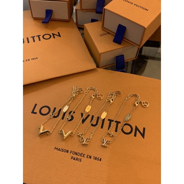 LV 經典 小花、V字、LV Logo設計 金色 女生 手鍊
