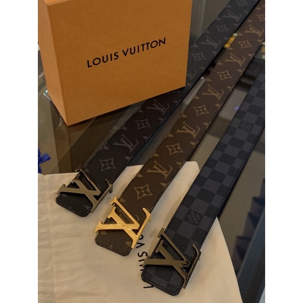 LV 經典 銀頭、金頭 黑色、灰色老花格紋設計 皮帶限量經典款男生皮帶