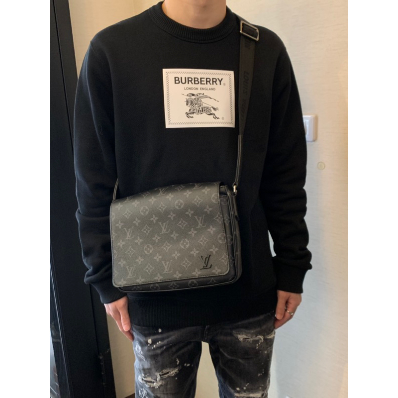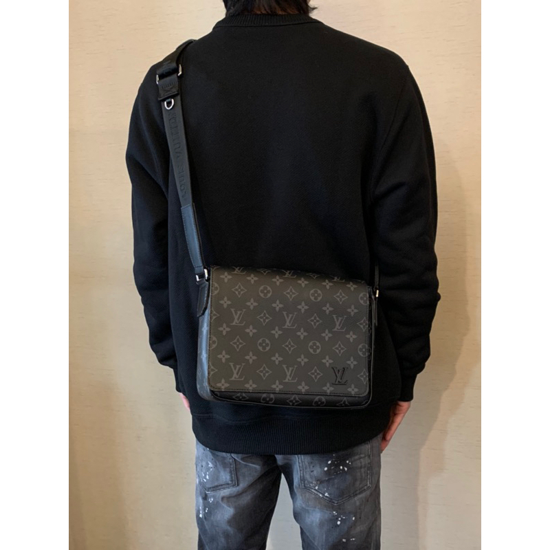 LV 經典 黑色老花設計 搭配立體Logo男生側背包