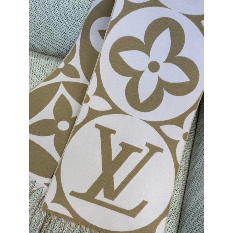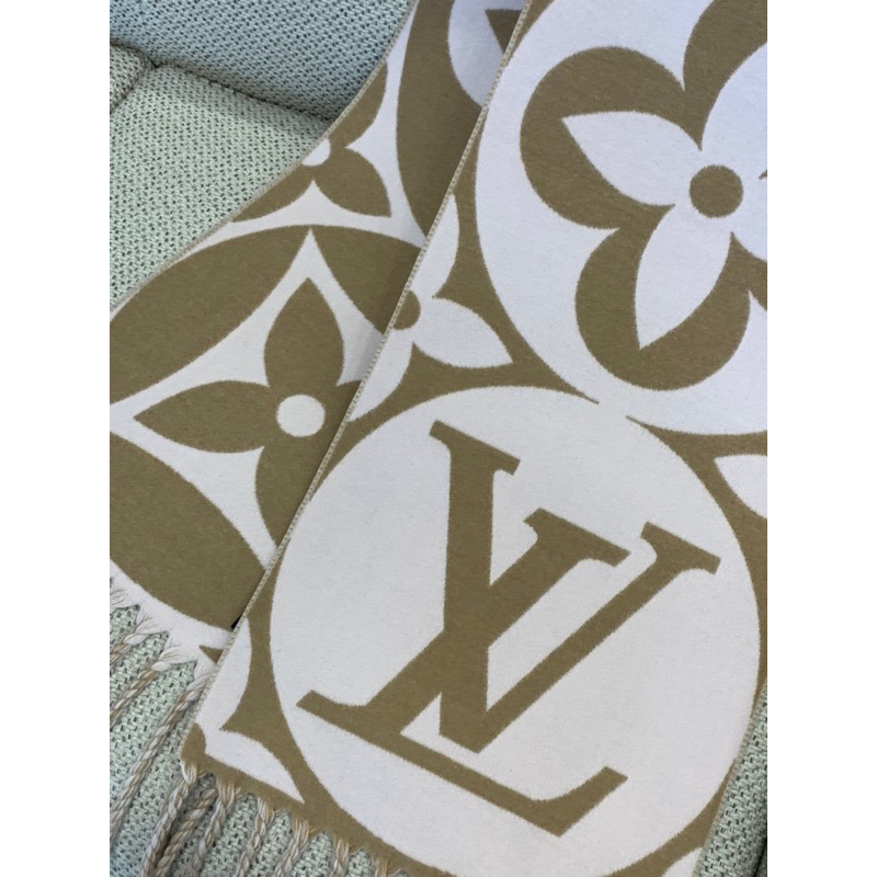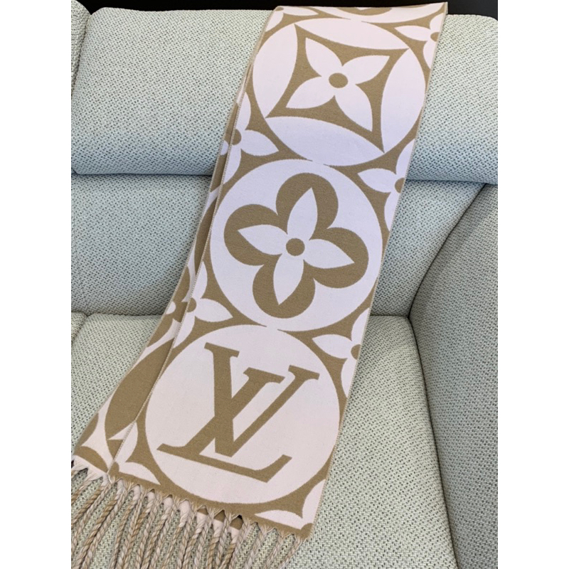 LV Medallion 經典老花 大logo 設計 黑色 奶茶色 灰色 深藍 圍巾