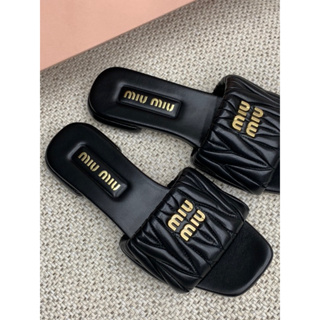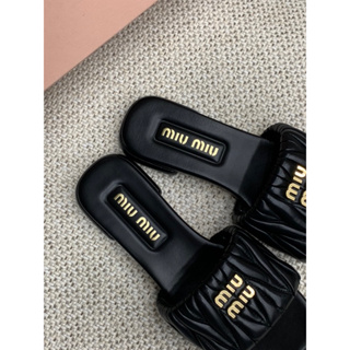 Miu miu 黑金配色 立體字母設計 女生 拖鞋 現貨