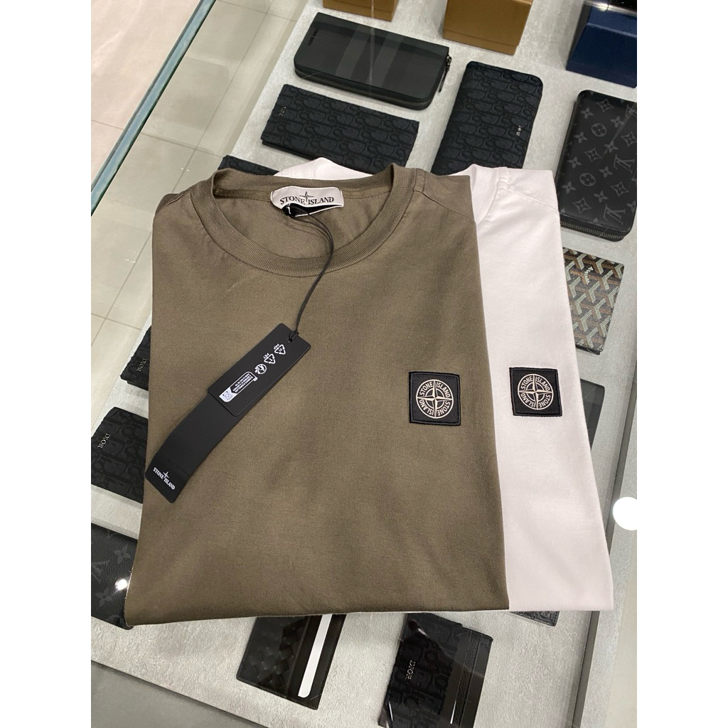 Stone island 經典 刺繡小logo設計 墨綠色、白色 短袖T恤上衣 素t