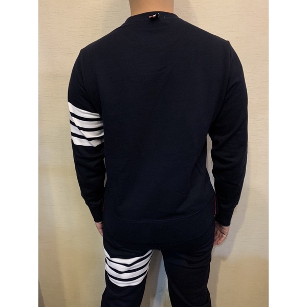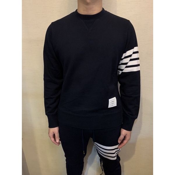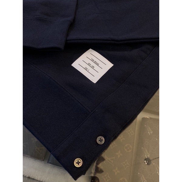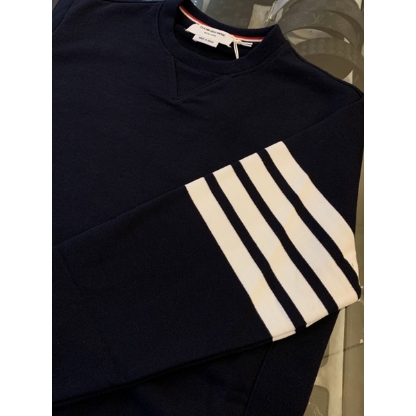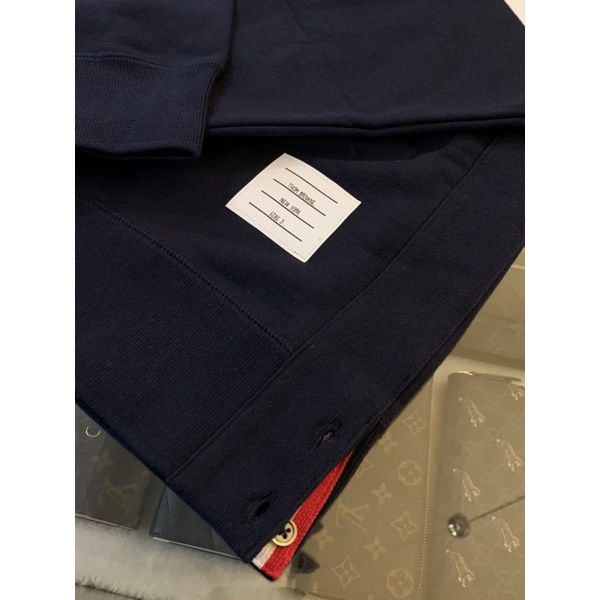 Thom Browne 經典 棉圈logo設計 深藍色 灰色 大學t長袖