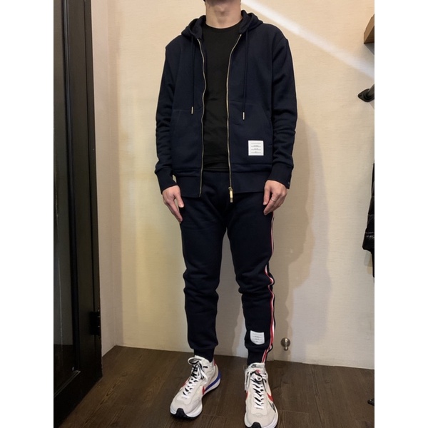 Thom Browne TB 經典背後紅白藍logo 配色 深藍 連帽外套 縮口棉褲 套裝