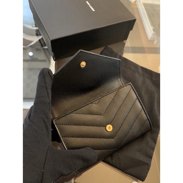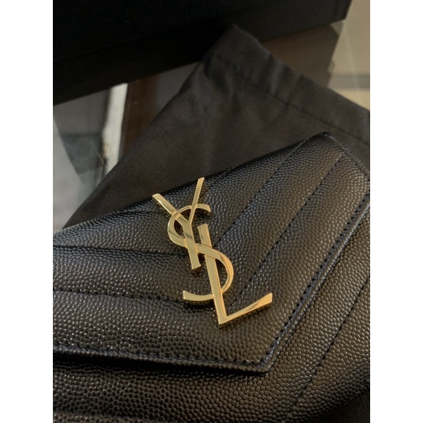 🔥經典的金色Ysl logo 魚子醬皮質的小錢包