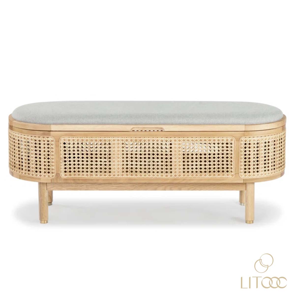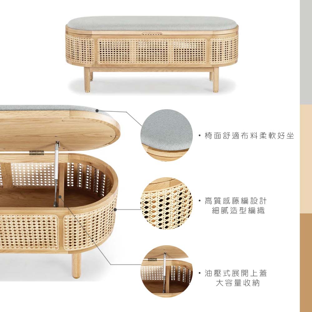 【LITOOC設計品牌】 ANKHARA 編藤美國白橡木儲物凳 (穿鞋椅/置物椅) 歐洲品質 非陸製淘寶家具保證