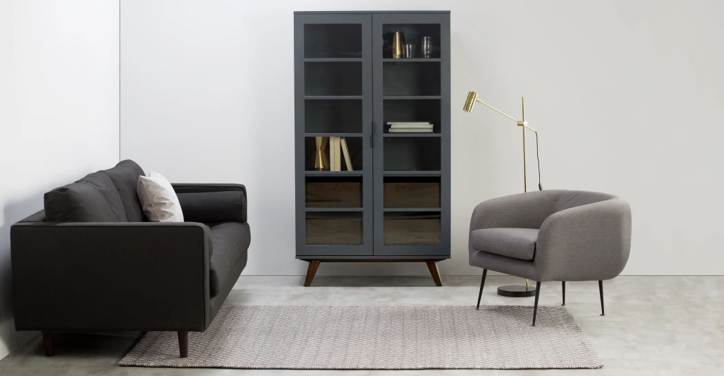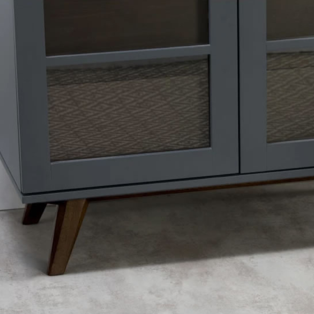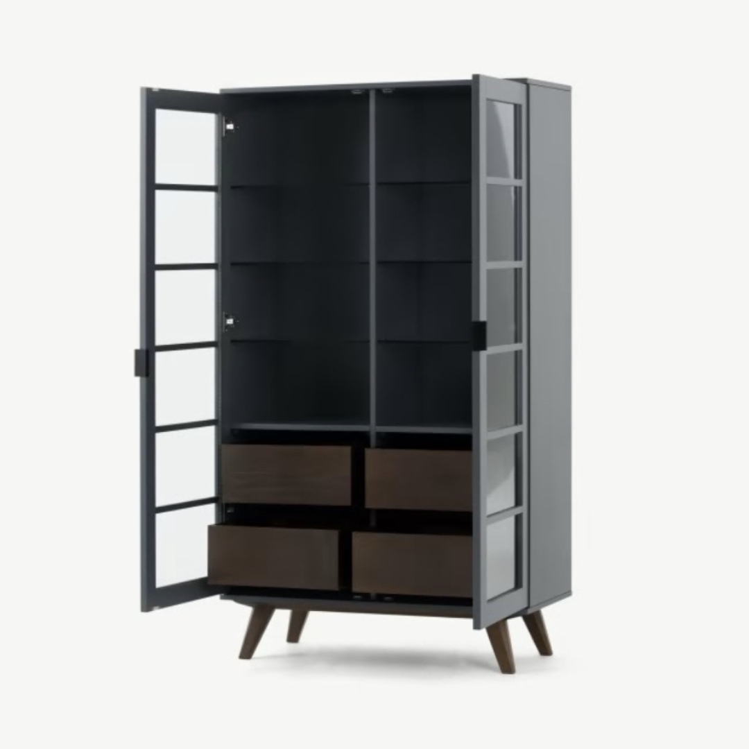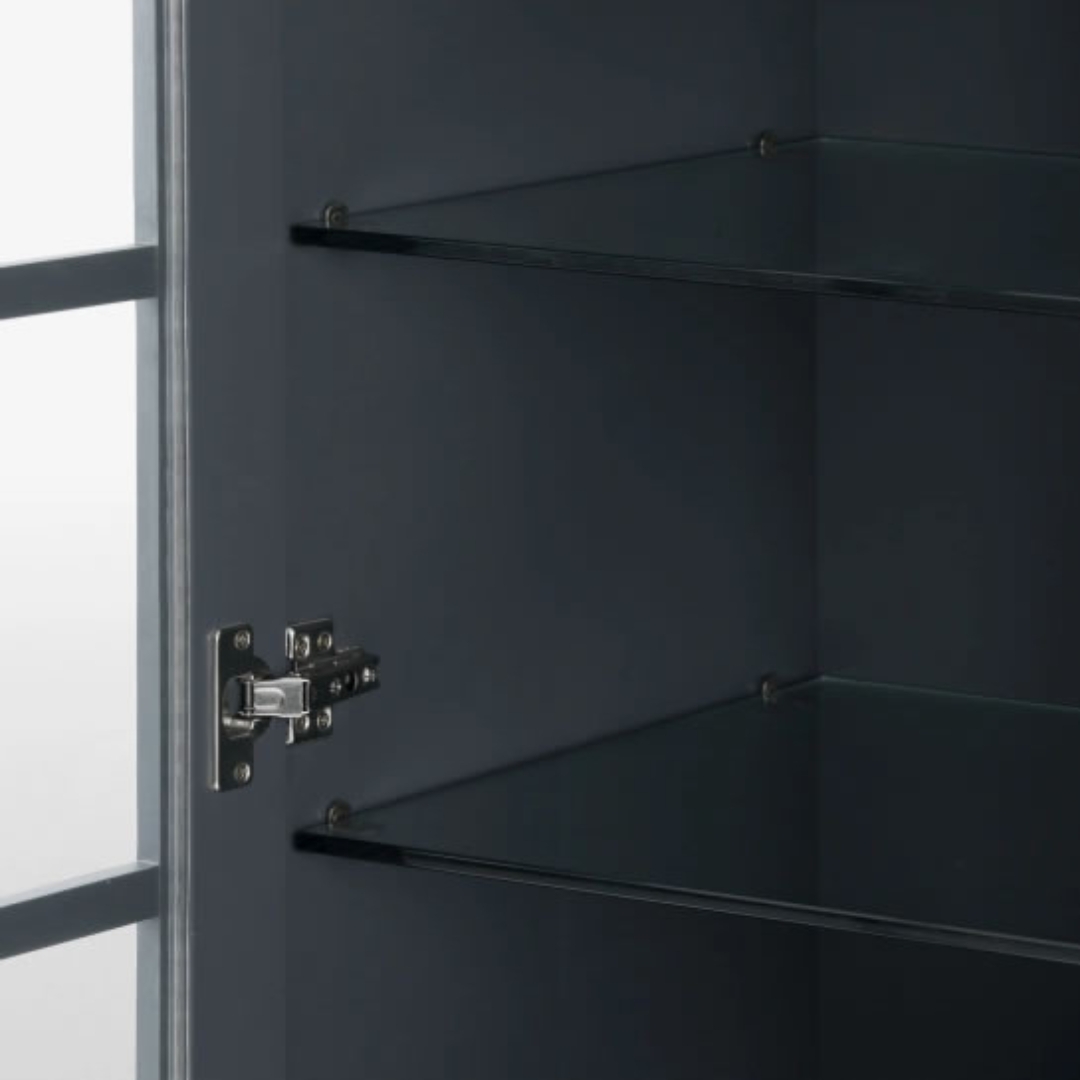 AVEIRO玻璃置物櫃,迷人的午夜藍色調為主體配色。精美的玻璃置物櫃讓您的家沉浸在寧靜的氛圍中。