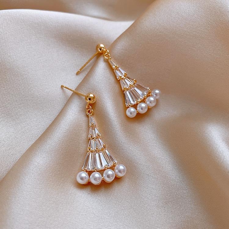 韓國S925微鑲巴黎鐵塔珍珠耳環
