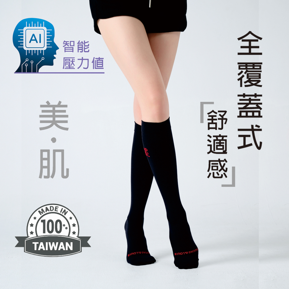 【LUCAS&LOUIS】(二入組 )AI鍺-全效壓力疏導襪/專業版/健身、久站、櫃姐、醫護/100%台灣製造 (專業黑)