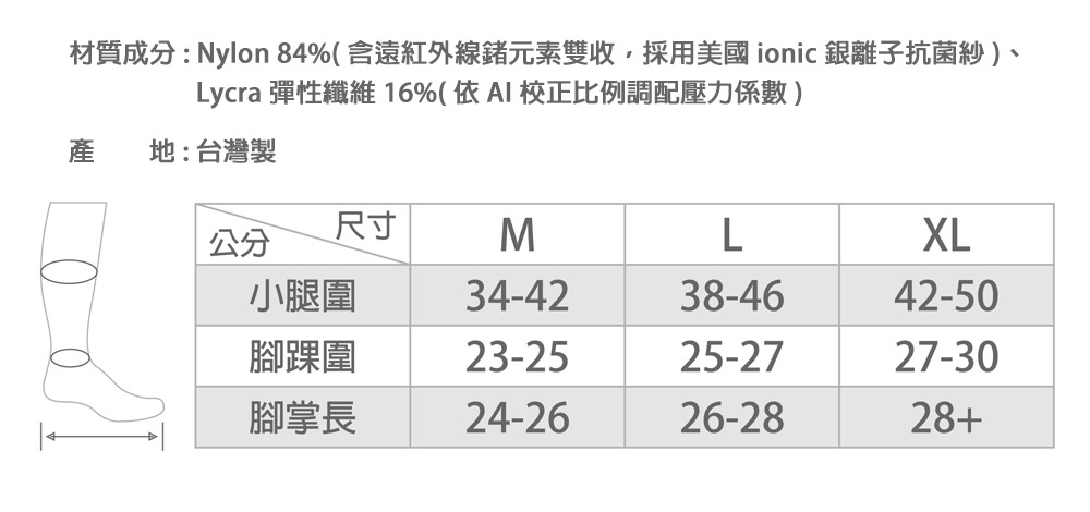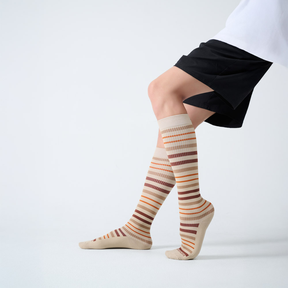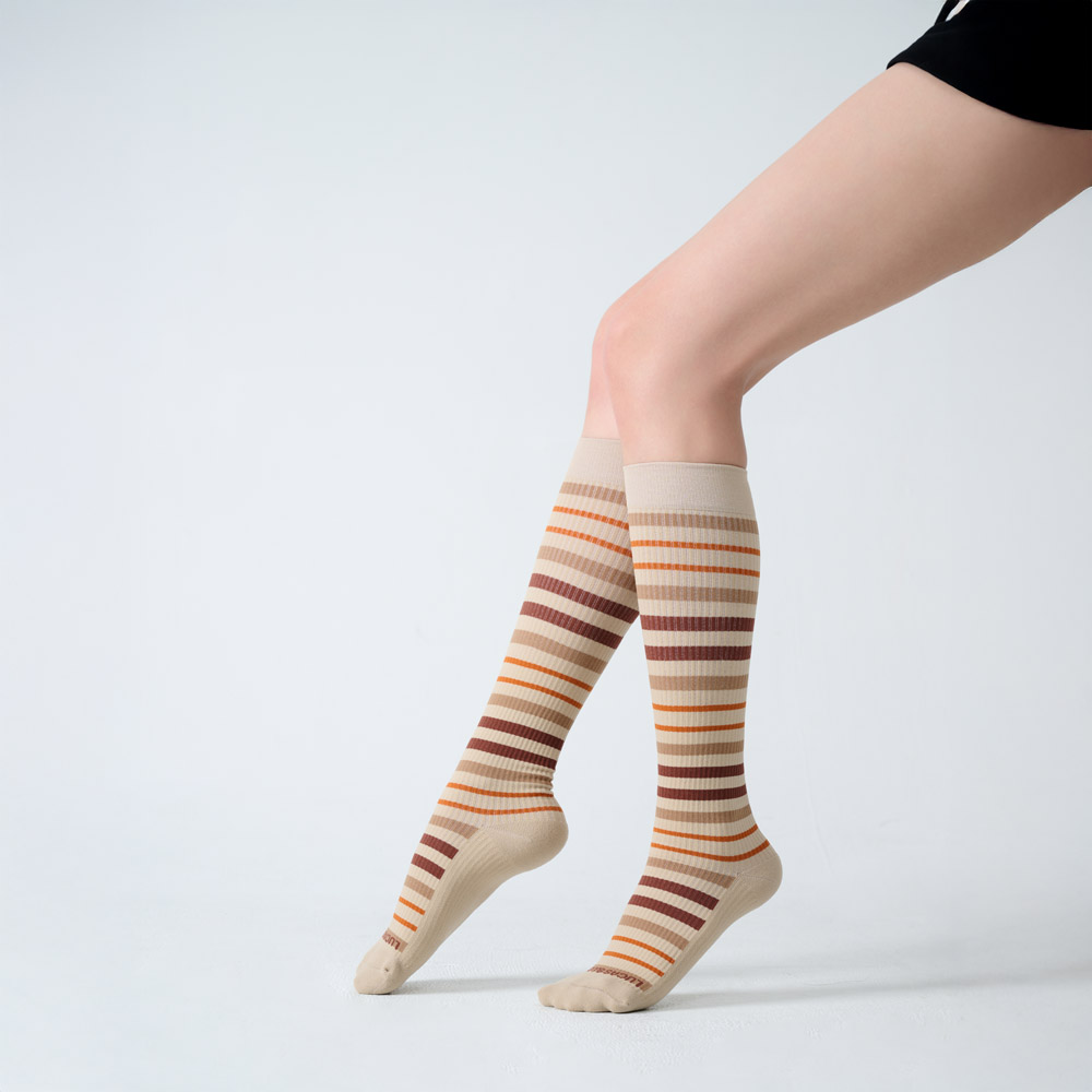 【LUCAS&LOUIS】(二入組 )AI鍺-全效壓力疏導襪/標準款/健身、久站、櫃姐、醫護/100%台灣製造 (條紋棕)