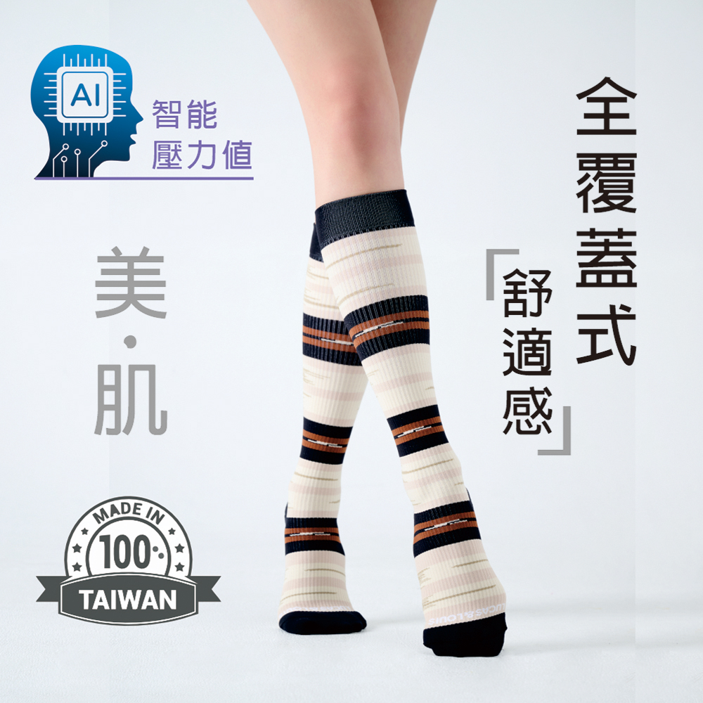 【LUCAS&LOUIS】(二入組 )AI鍺-全效壓力疏導襪/標準款/健身、久站、櫃姐、醫護/100%台灣製造 (米咖色)