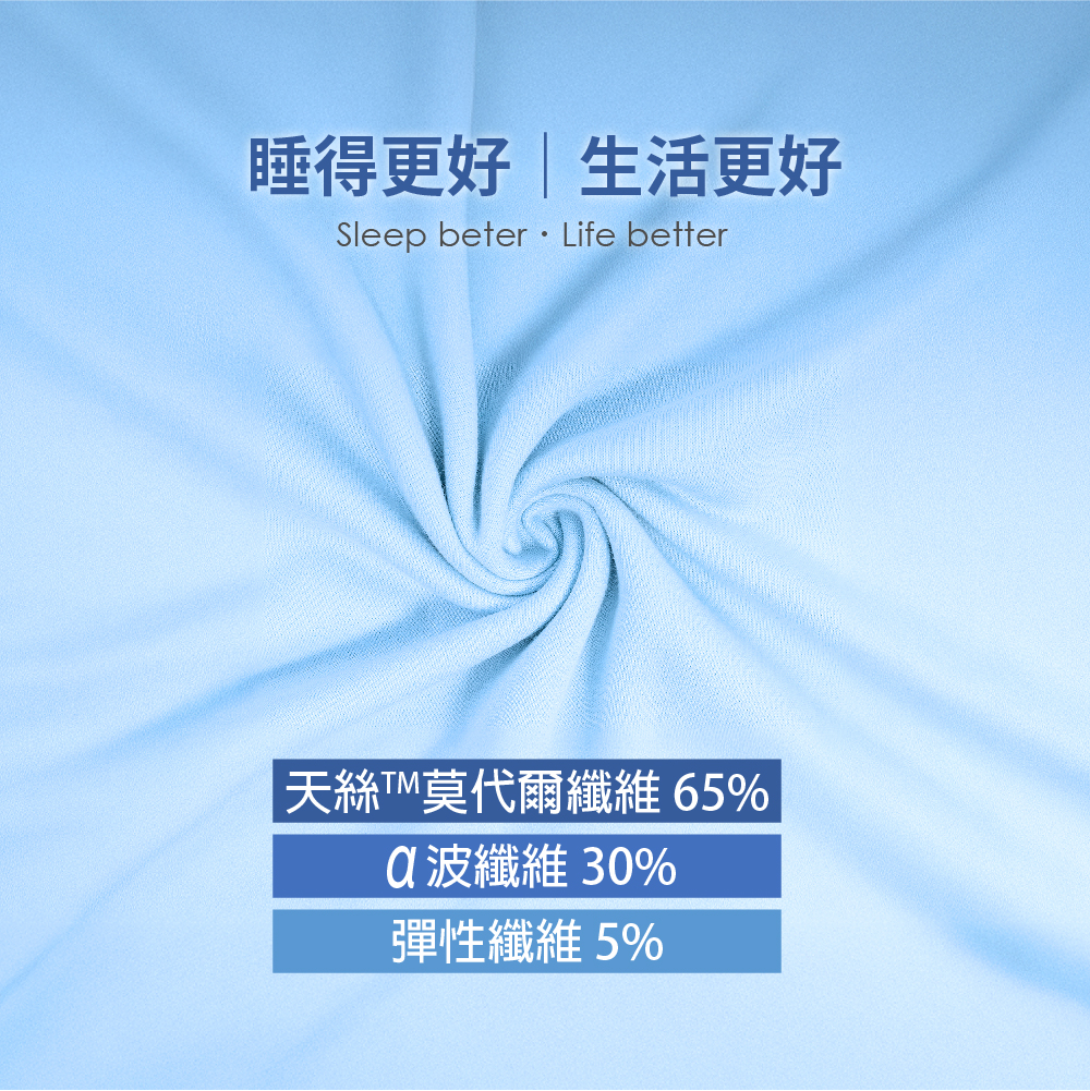 材質成分:天絲TM莫代爾纖維65%、α波纖維30%、彈性纖維5%