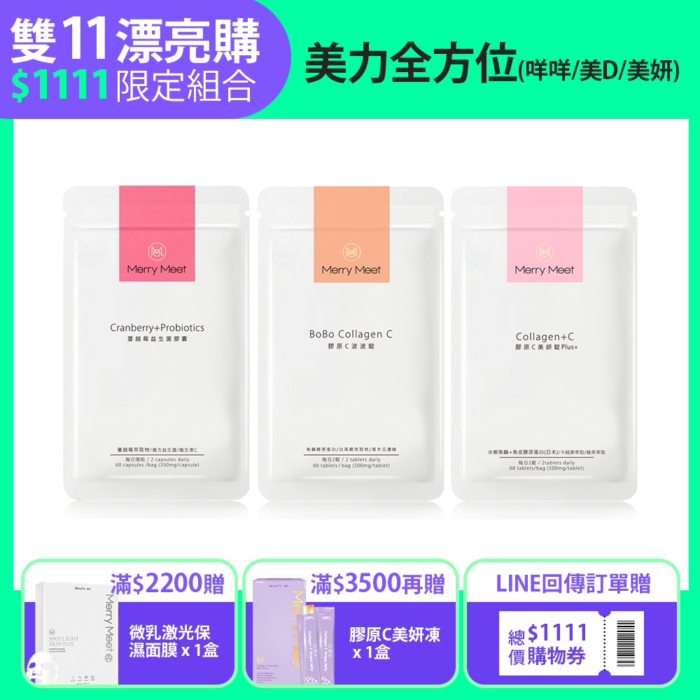 組合內容物: 蔓越莓益生菌1袋 +膠原C美妍錠1袋+膠原C波波錠1袋