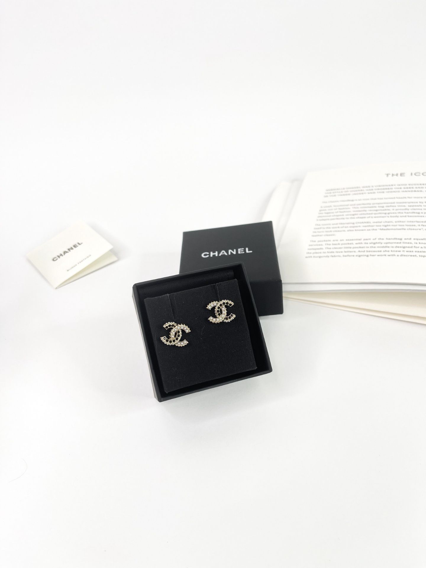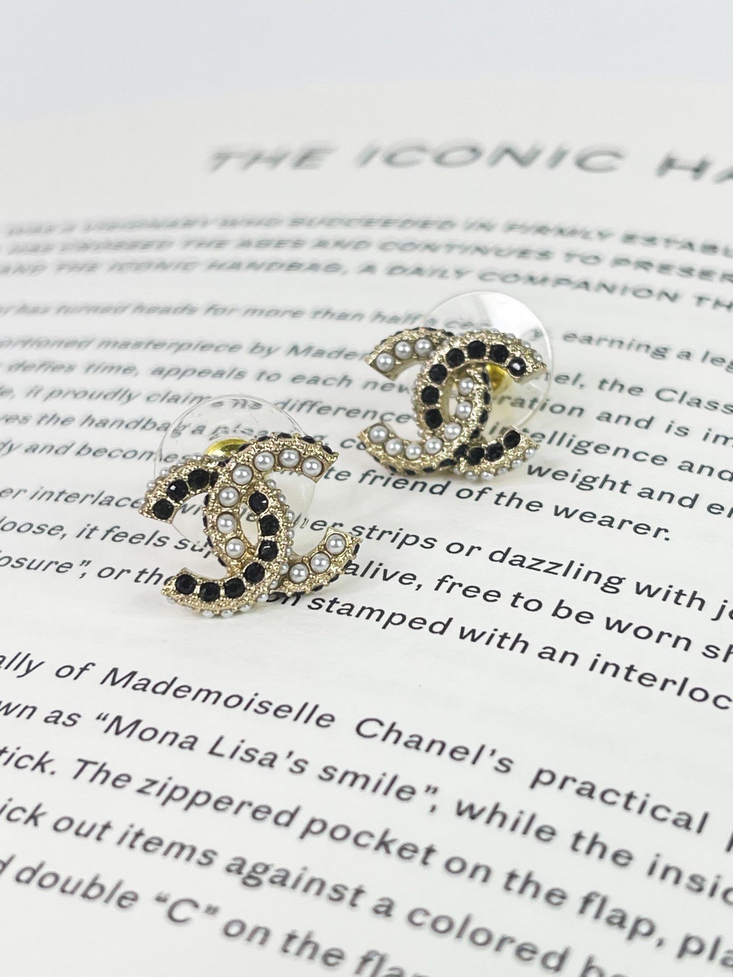 【全新品】CHANEL 拚色閃石珍珠耳環