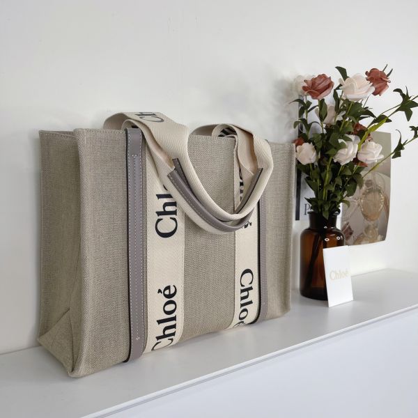 【全新品】Chloé 中號Woody Tote Bag 麝香灰