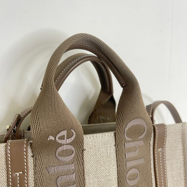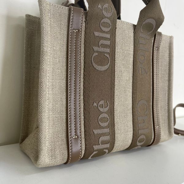 【全新品】Chloé SMALL WOODY TOTE 提把編織款 深堅果