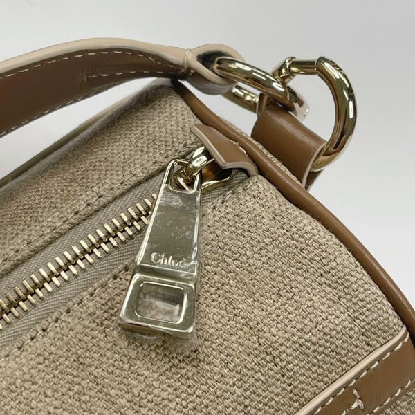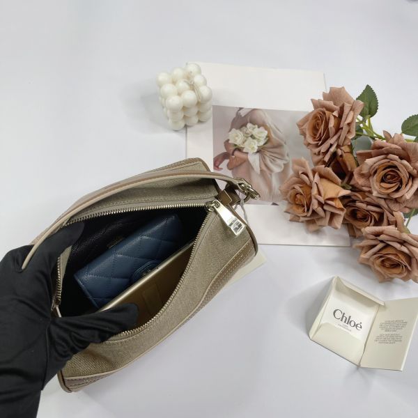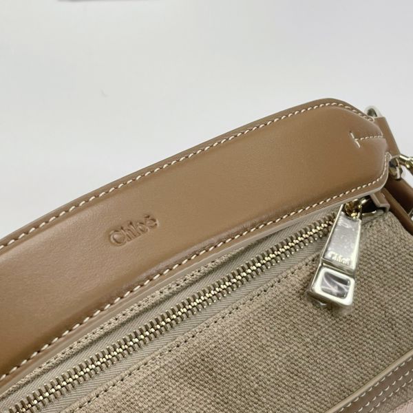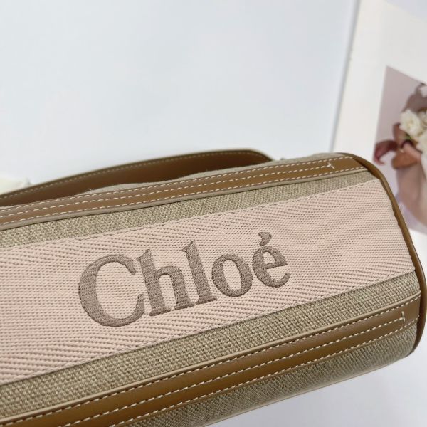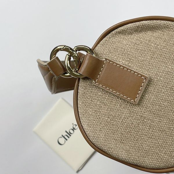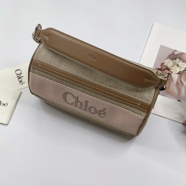 【全新品】Chloé WOODY 亞麻拼接皮革圓筒包