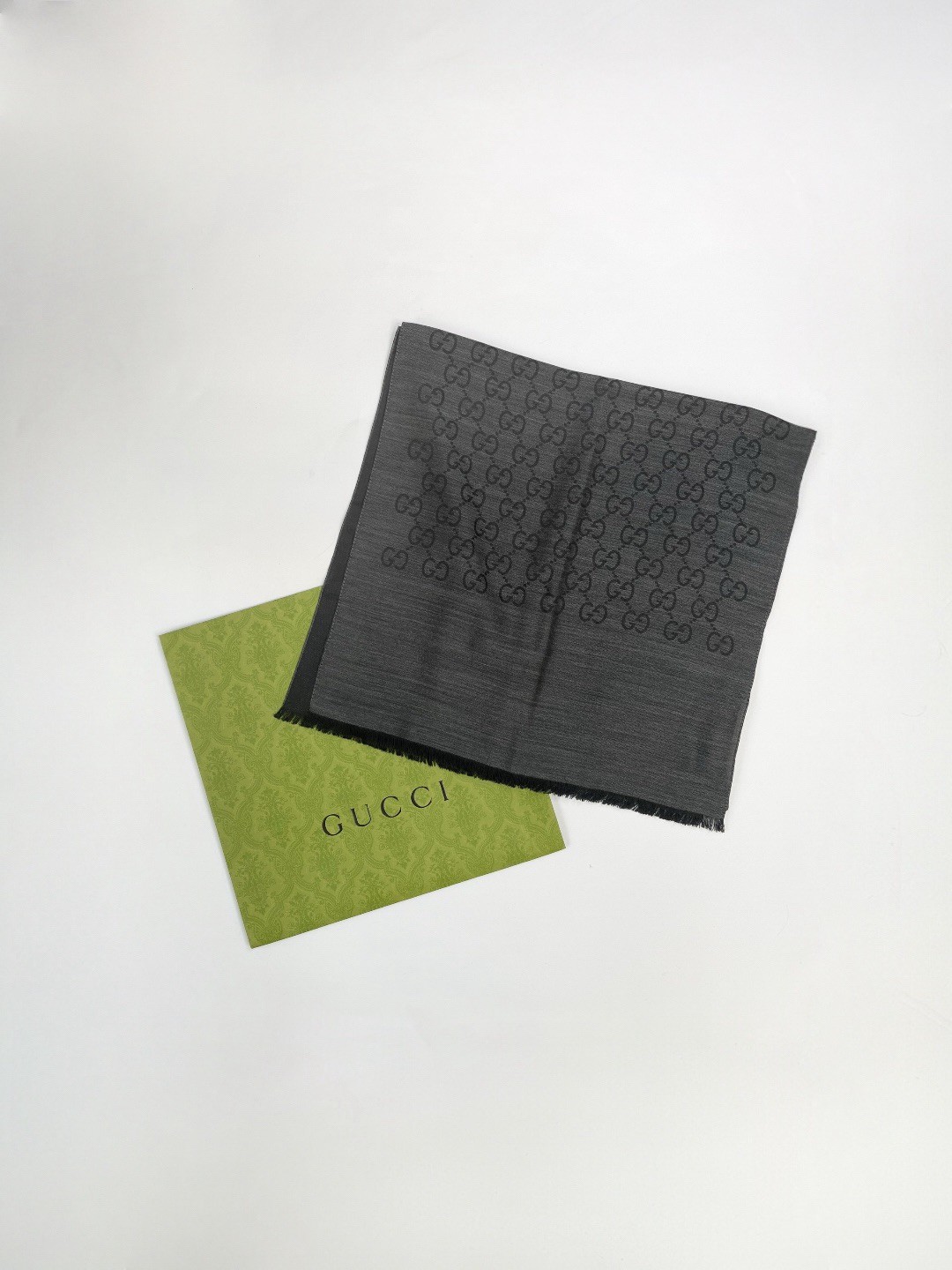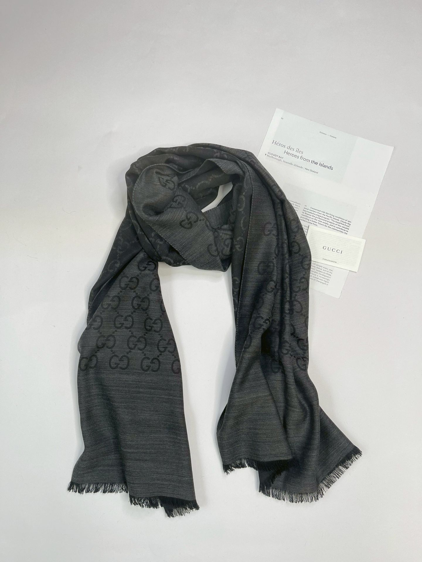 【全新品】GUCCI GG緹花雙色羊毛混絲流蘇圍巾