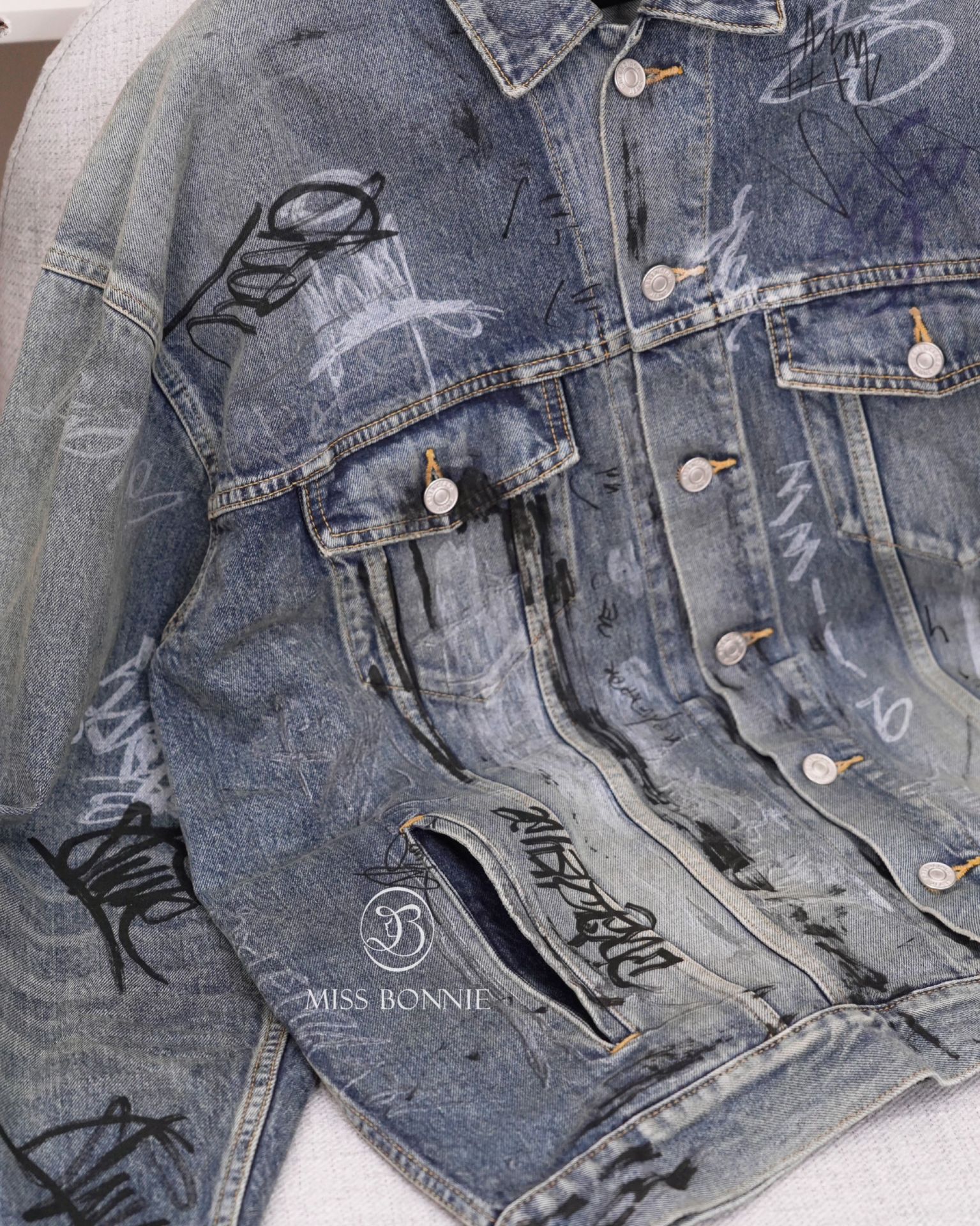 BALENCIAGA OVERSIZED 滿版印花牛仔外套