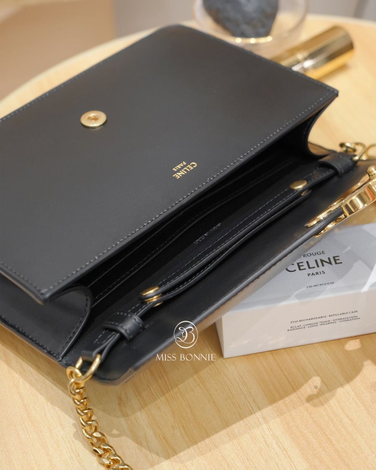 Celine 凱旋門釦小牛皮WOC-黑色/金釦(預購)