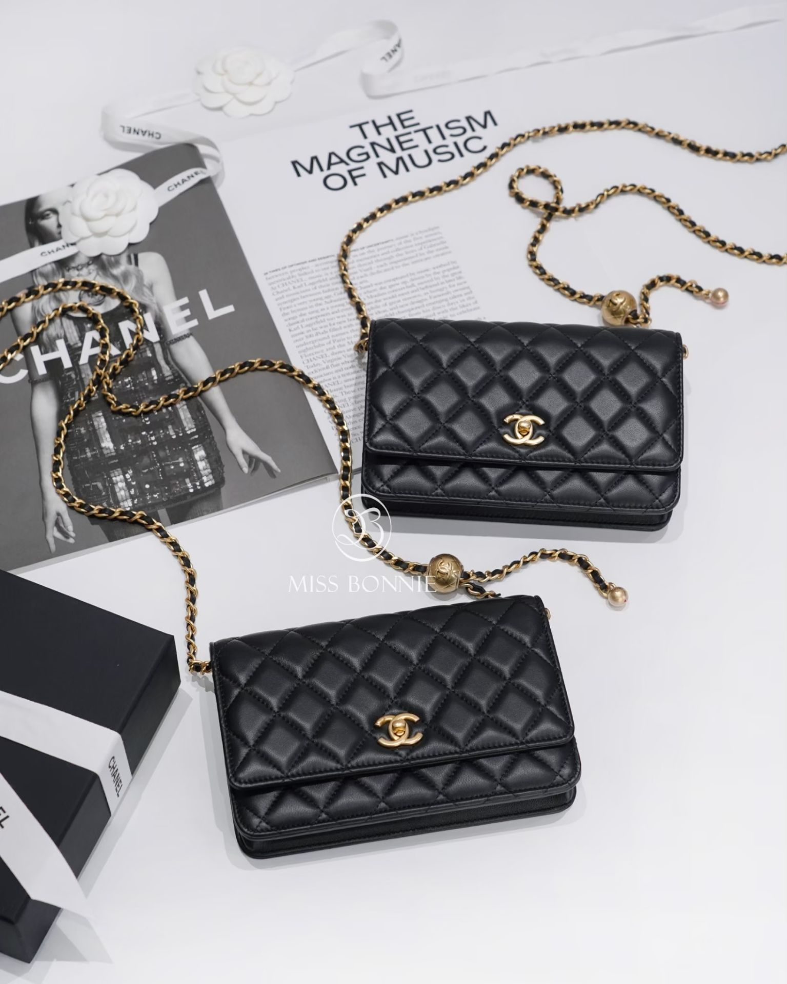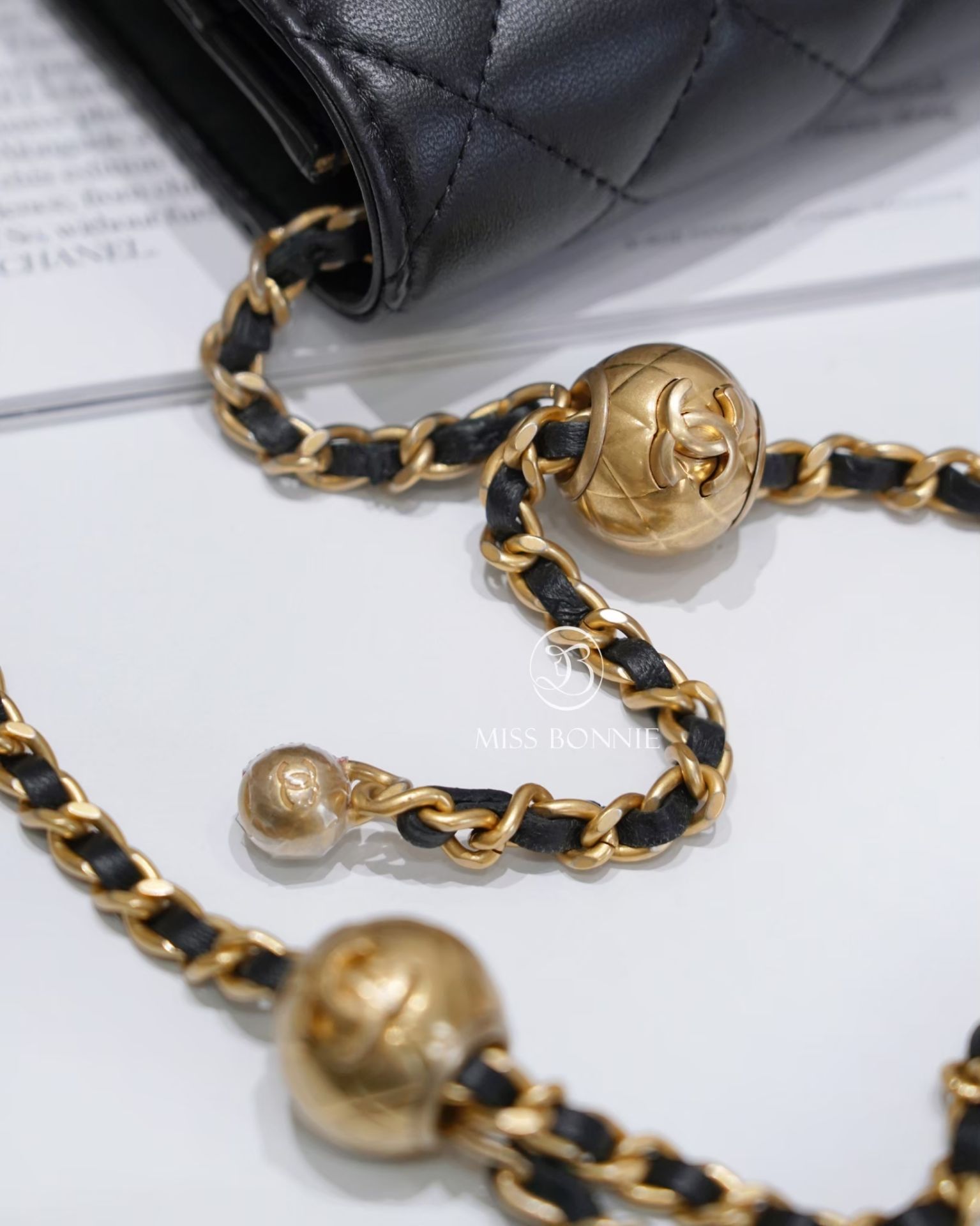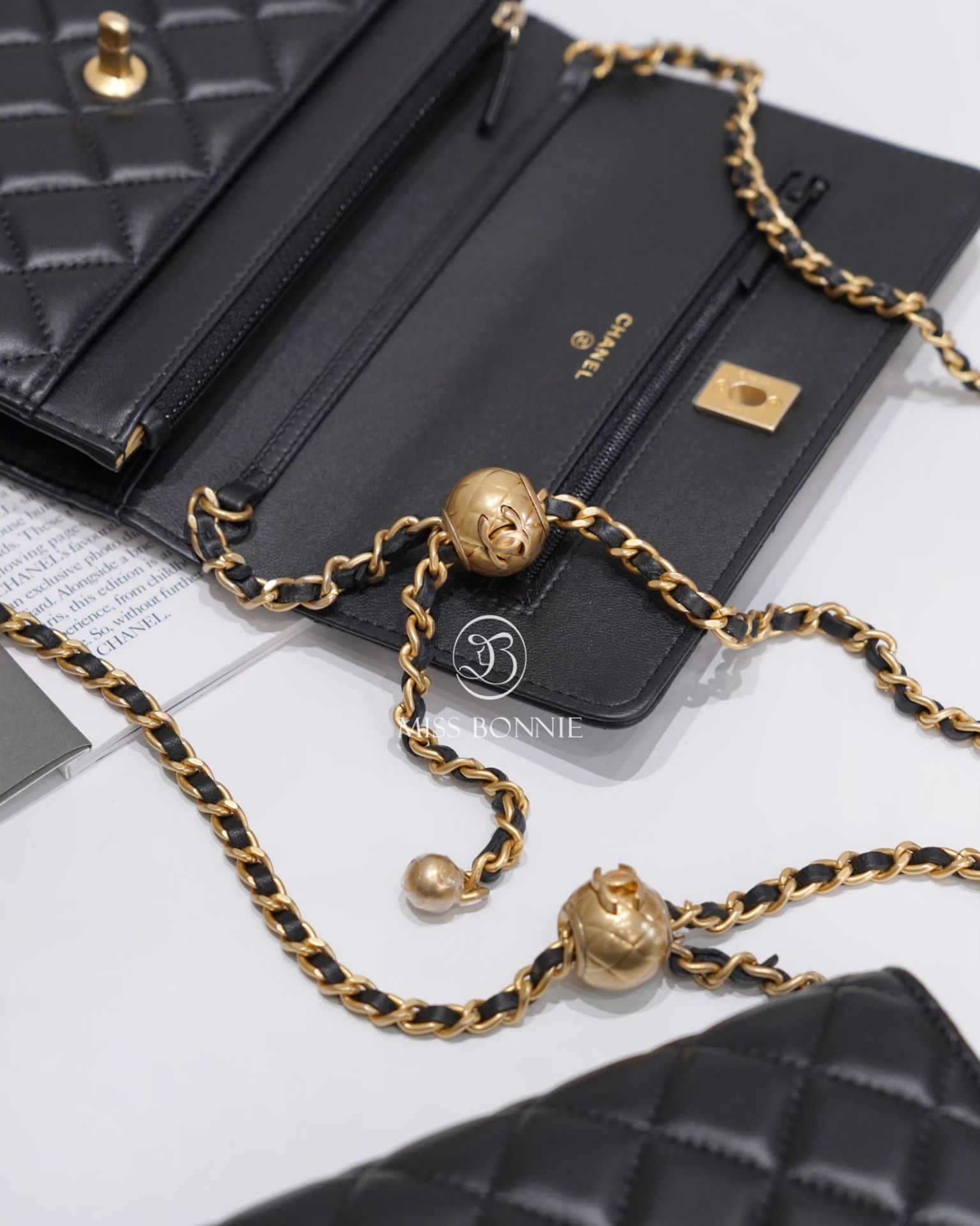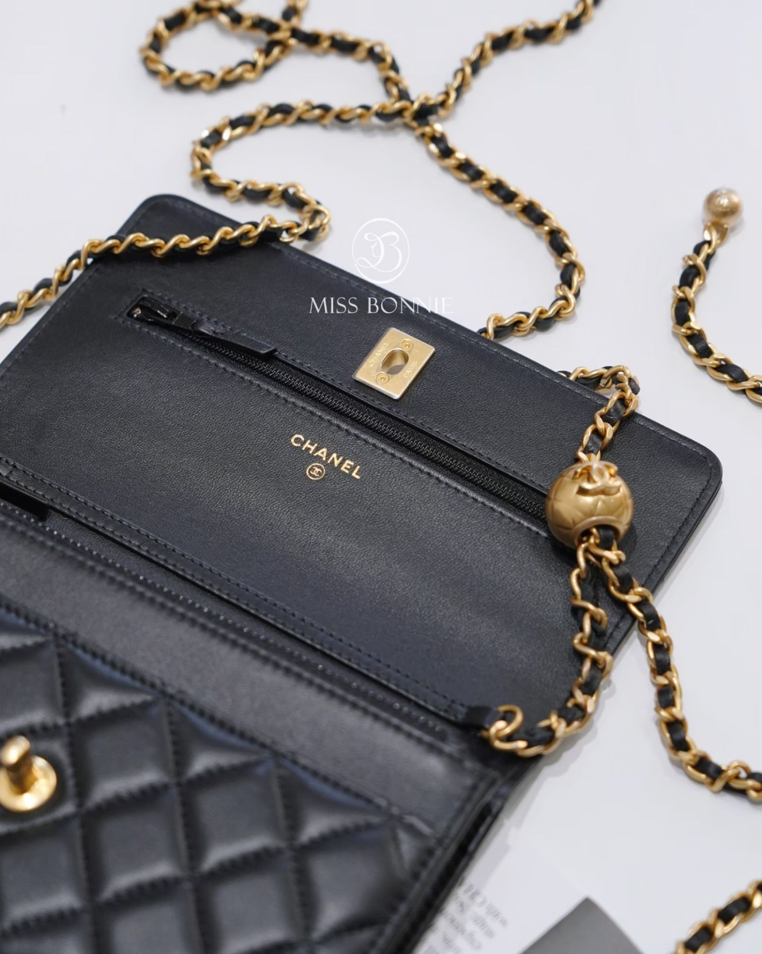 CHANEL經典小金球WOC-黑色/金釦