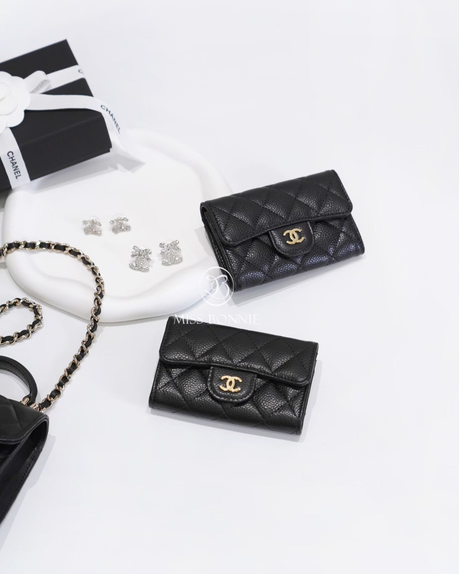 CHANEL菱格紋荔枝牛皮單層卡包-黑色/金釦