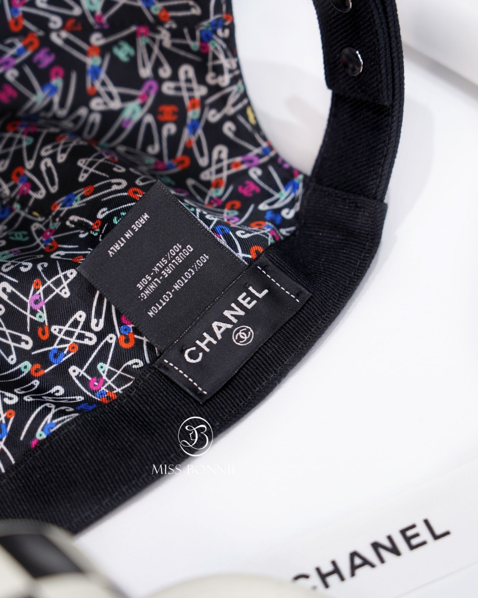 CHANEL 24A內裏迴紋針圖騰刺繡LOGO棒球帽/黑色