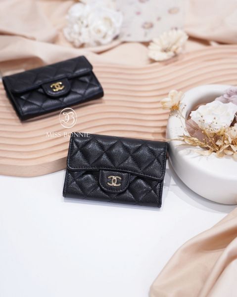 CHANEL Coco單層內拉鍊卡包-黑色淡金釦
