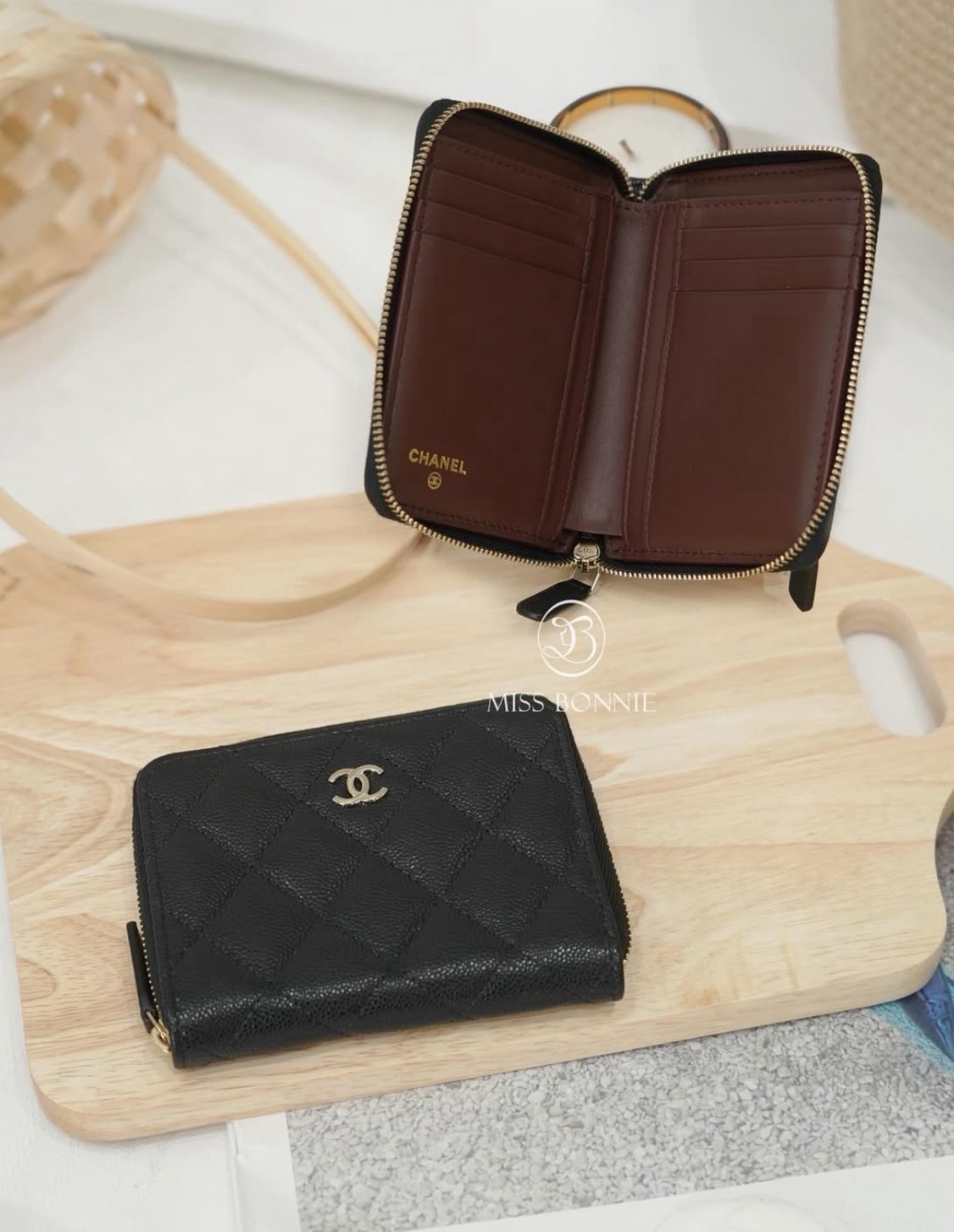 CHANEL Coco拉鍊對開短夾-黑色/淡金釦