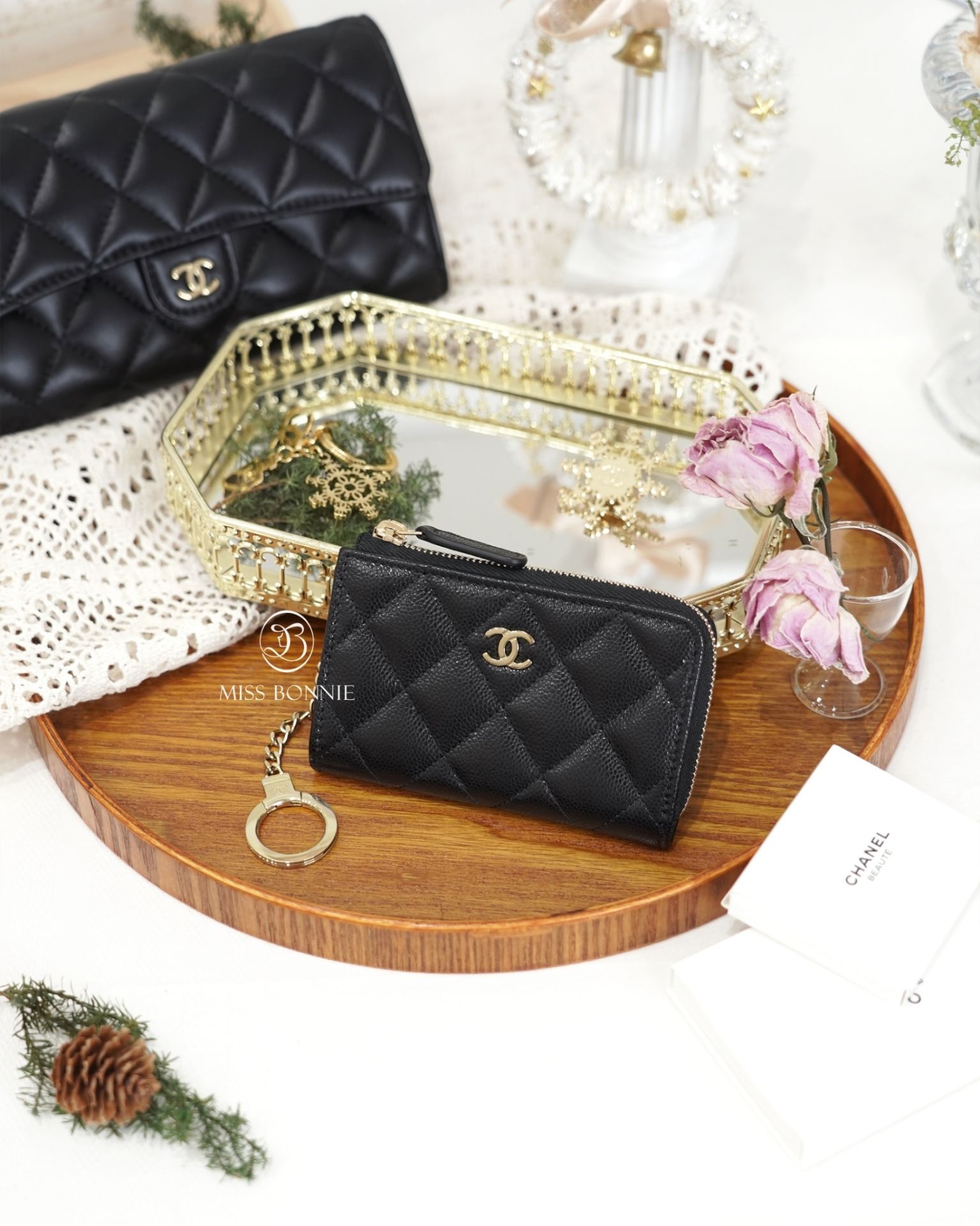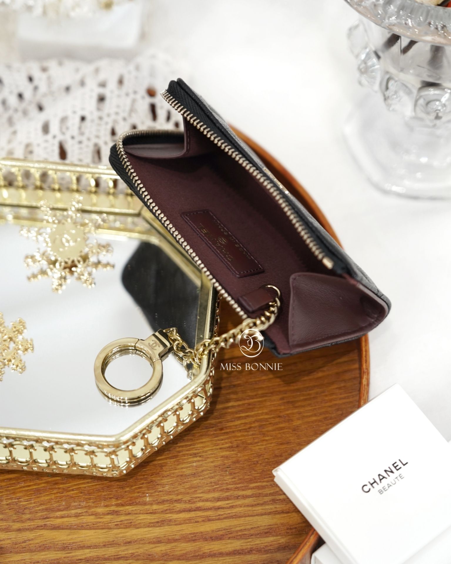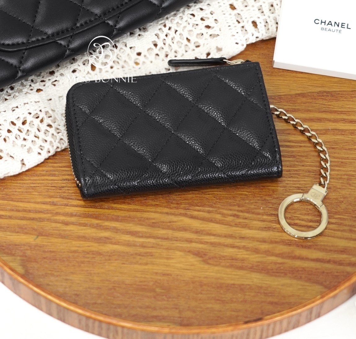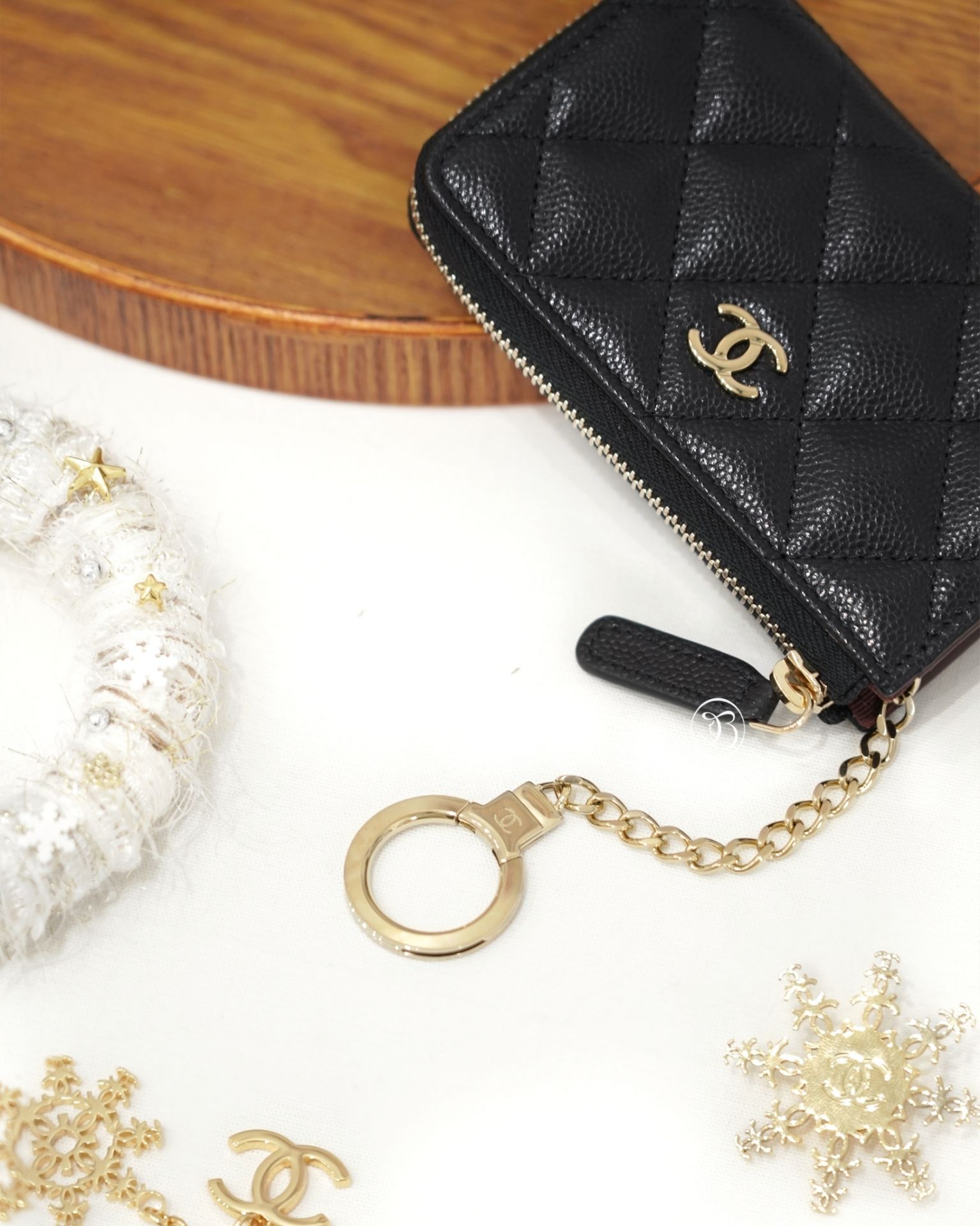 CHANEL Coco拉鍊L型鑰匙卡包-黑/淡金釦