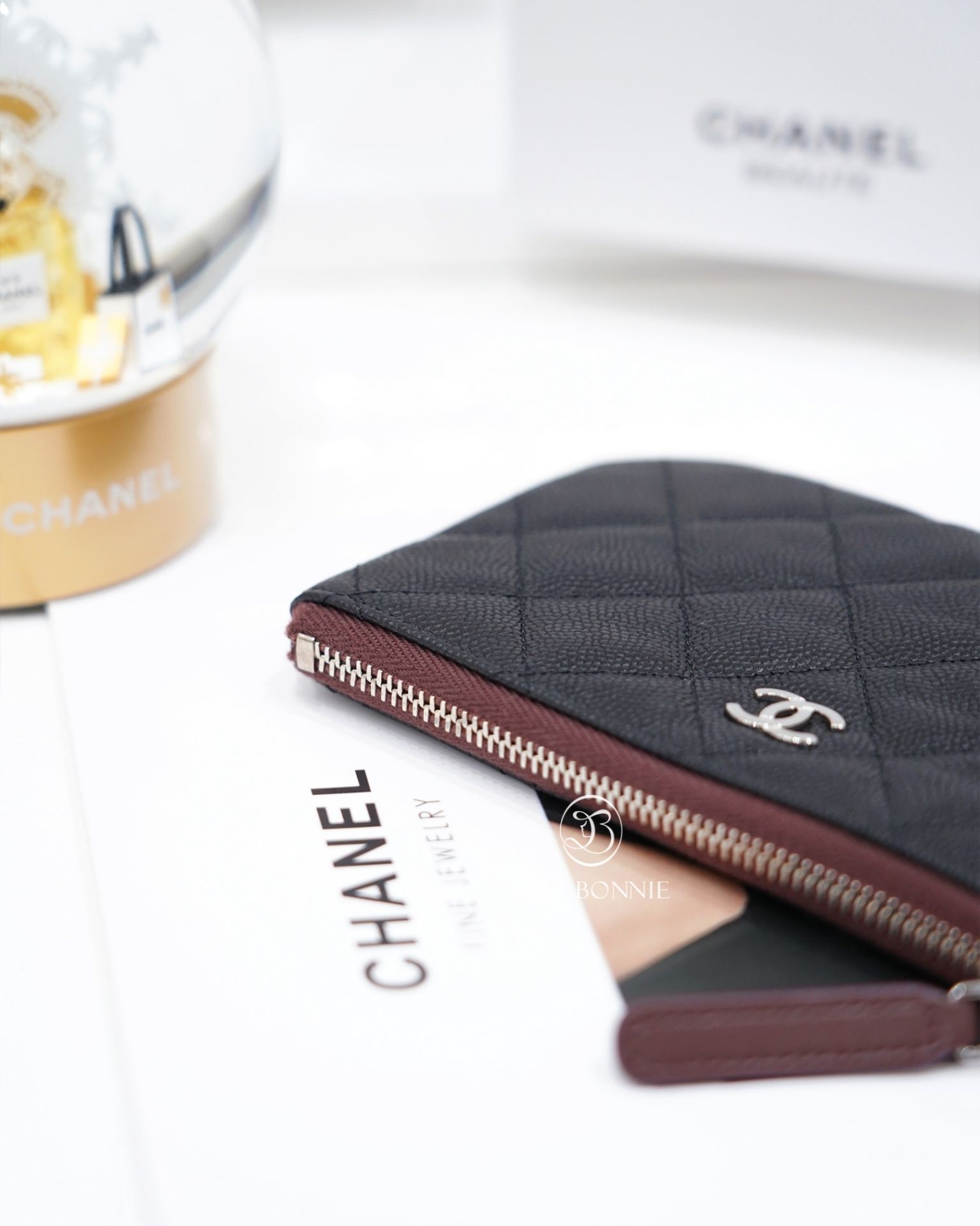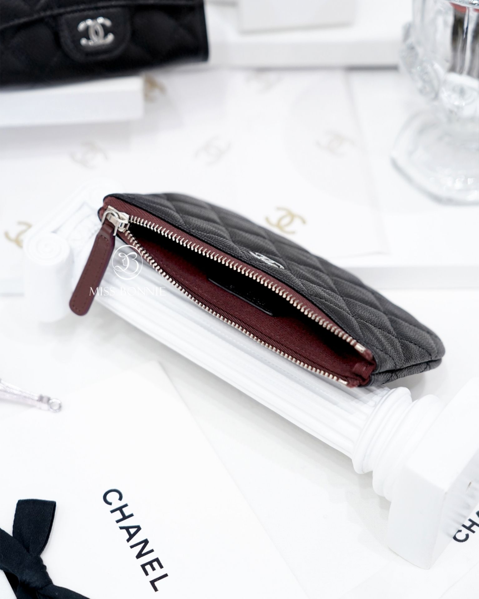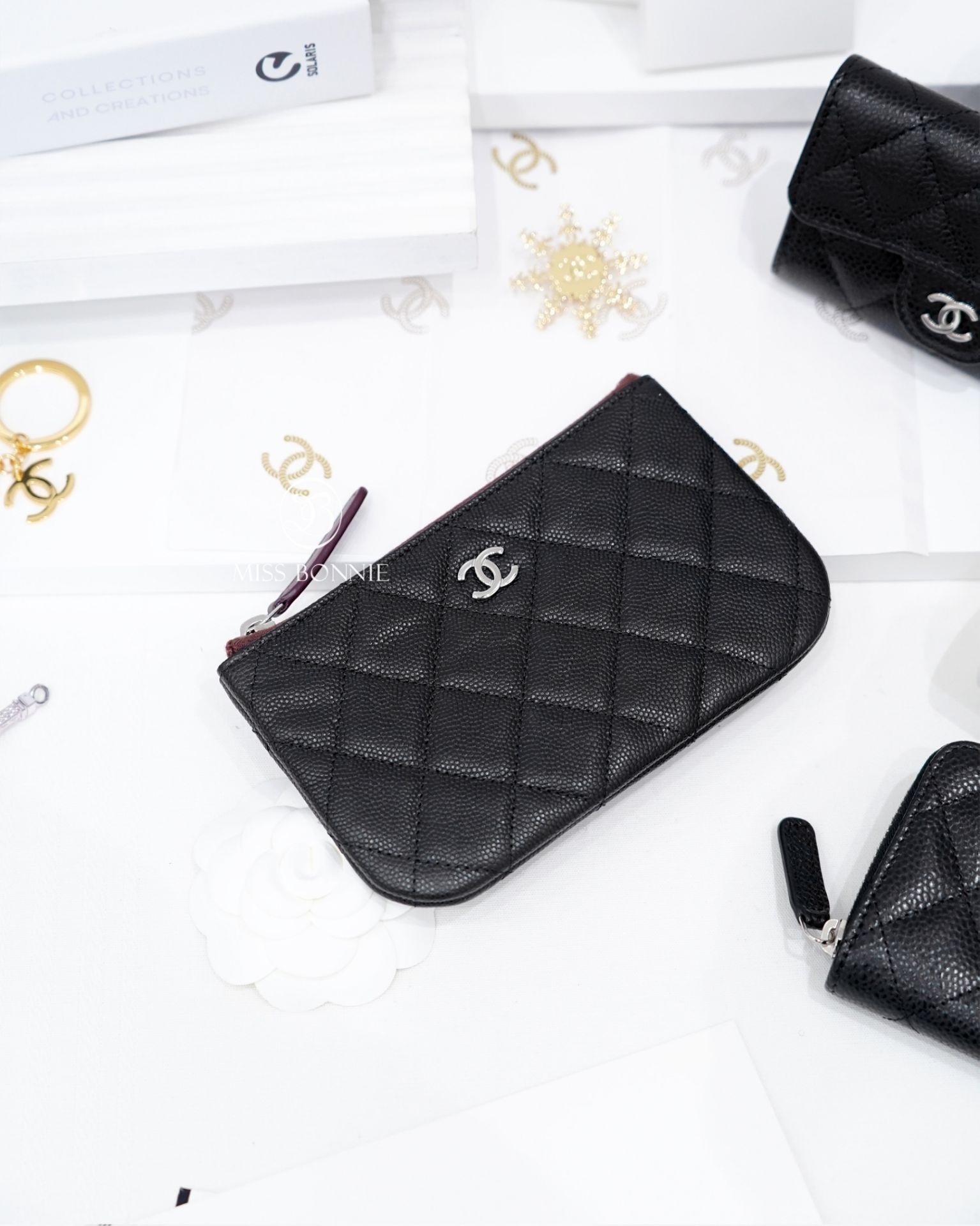 CHANEL Coco荔枝牛皮一字拉鍊零錢包-黑色/銀釦-(預購)