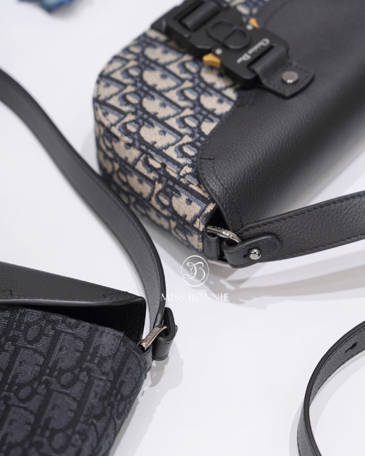 經典的Oblique 提花拼接黑色小牛皮