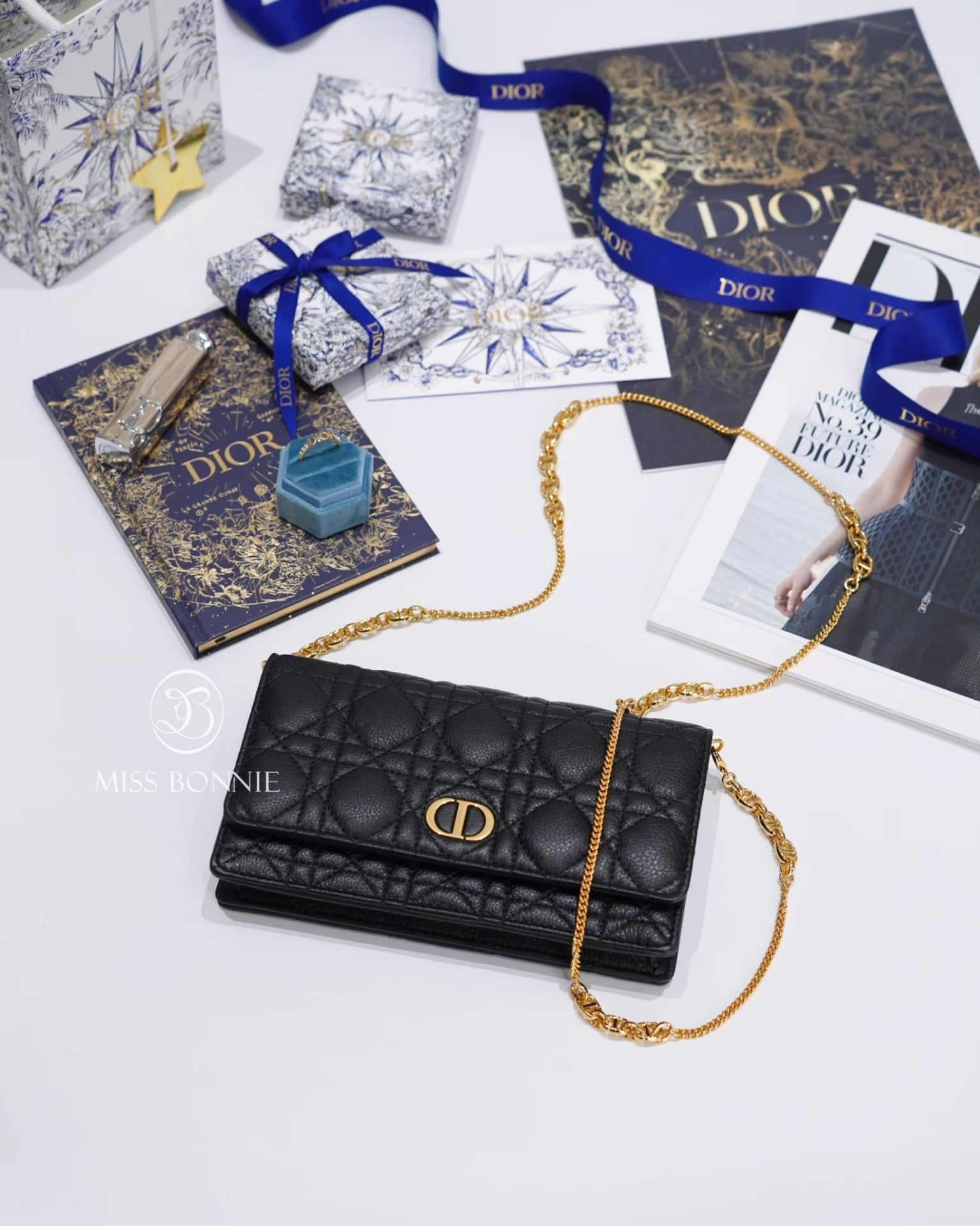 DIOR CARO牛皮WOC鏈包-黑色/金釦-(預購)