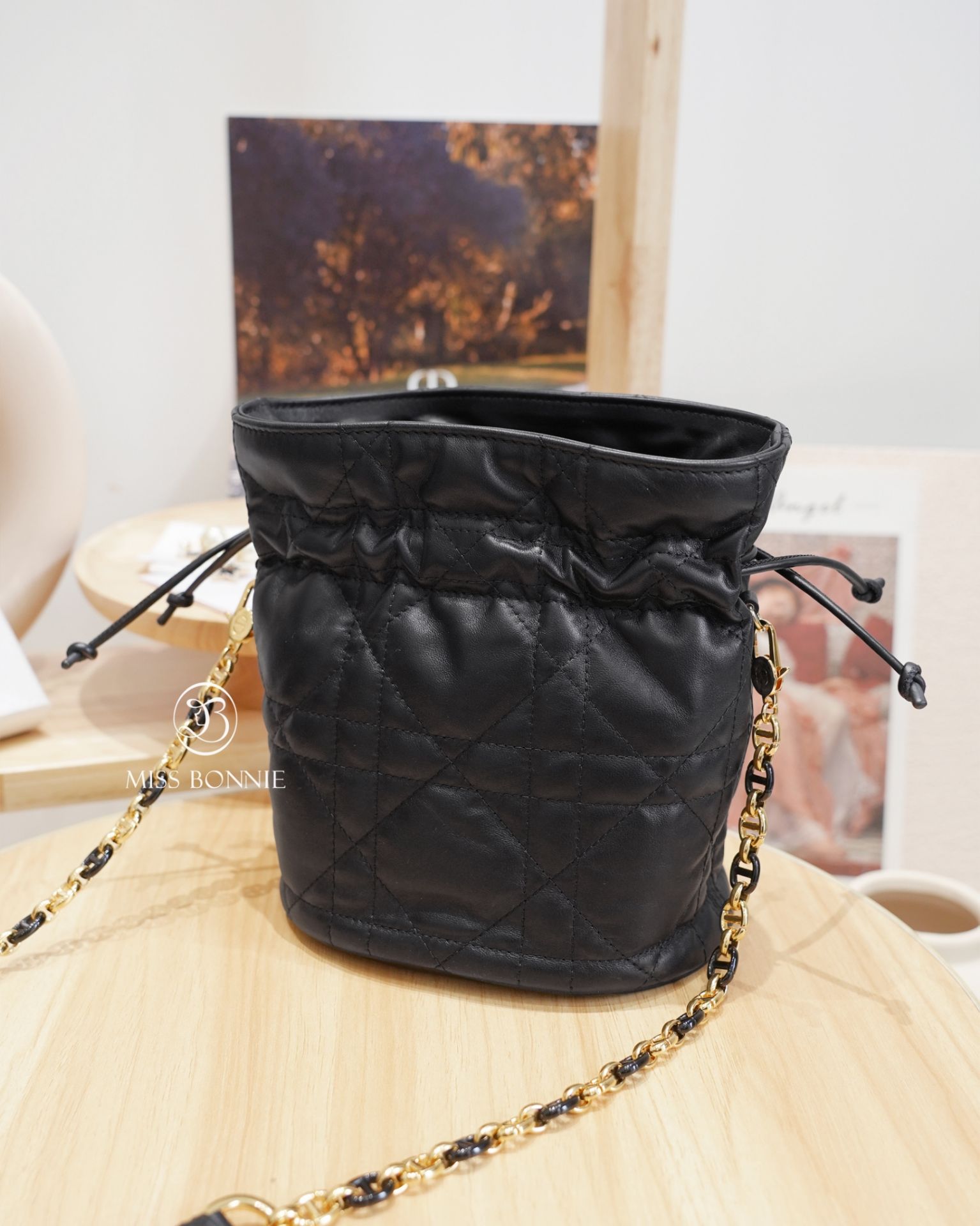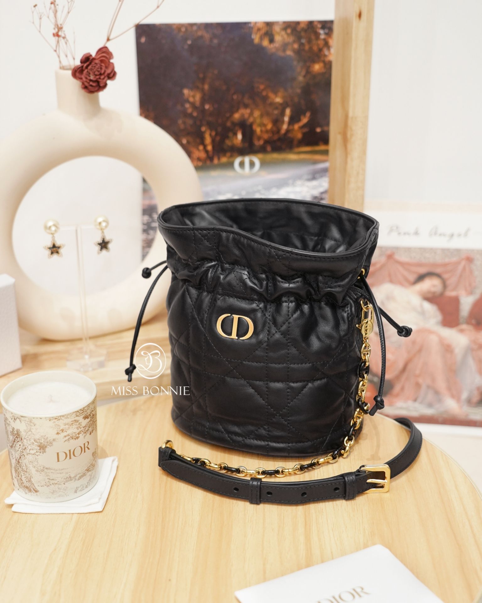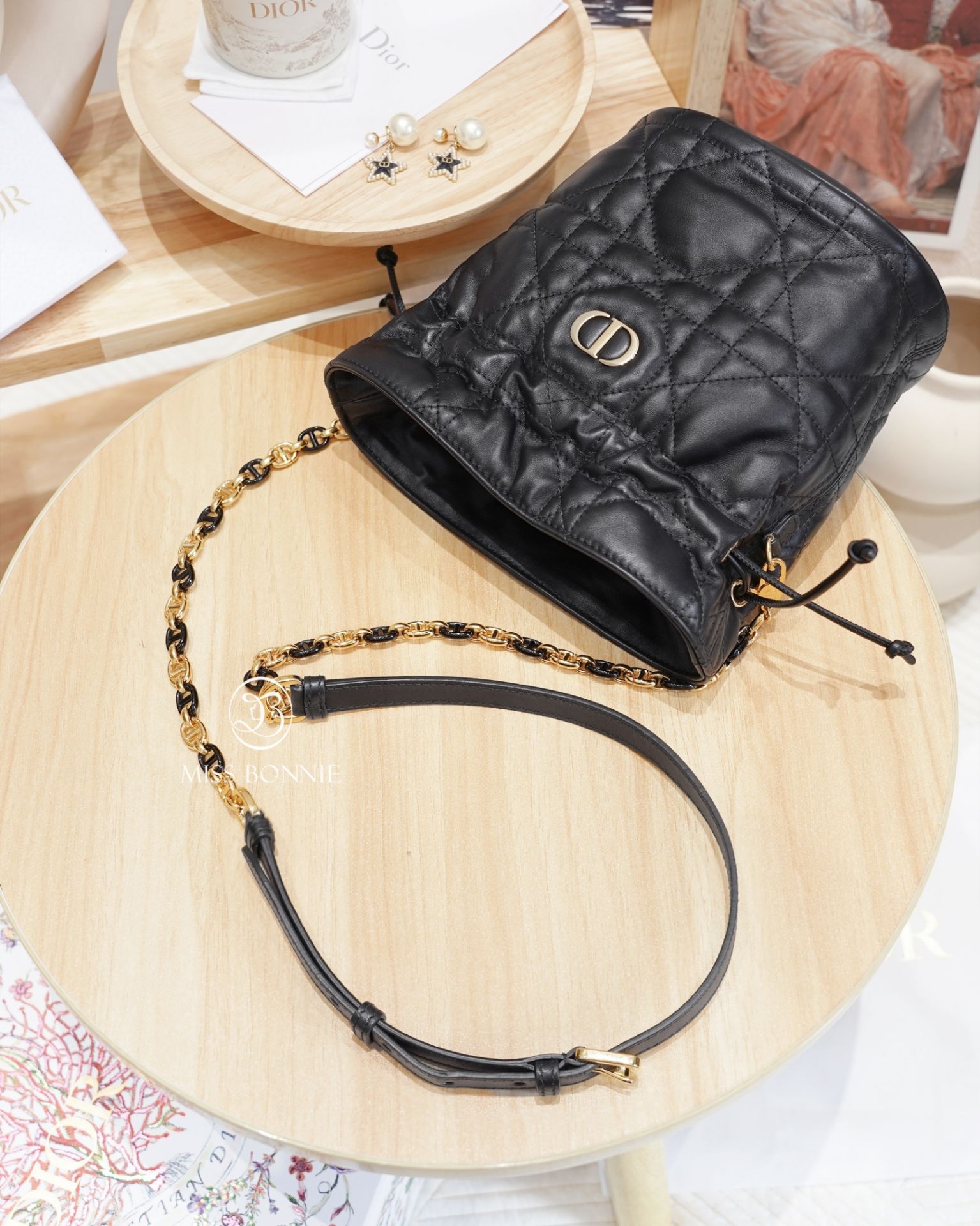 Dior Miss Caro迷你抽繩水桶包-黑色(預購)