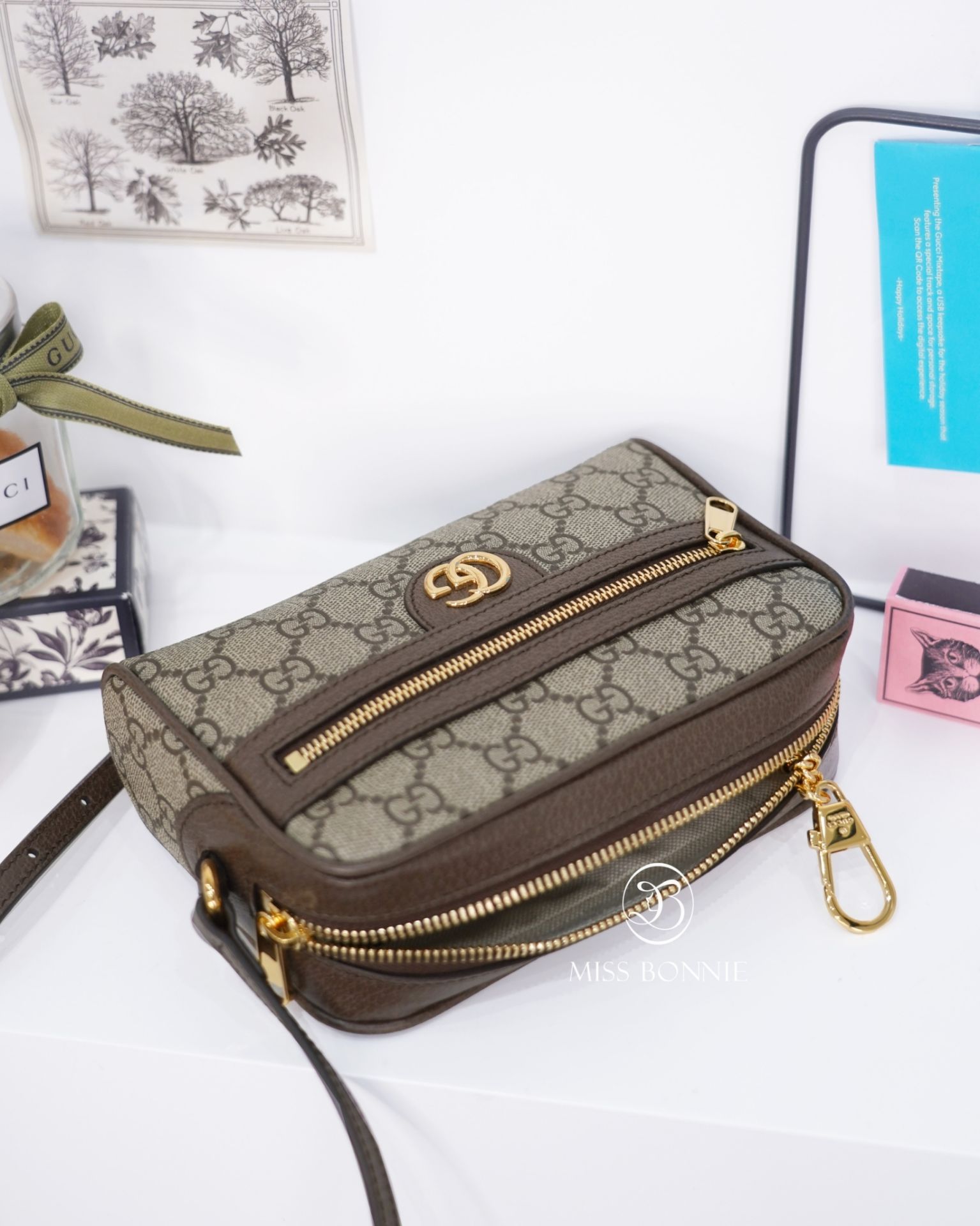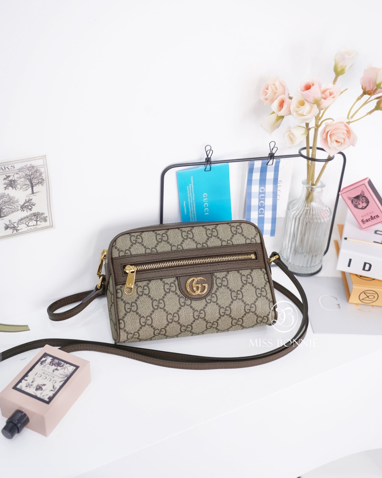 GUCCI Ophidia老花迷你肩背包/棕色(預購)