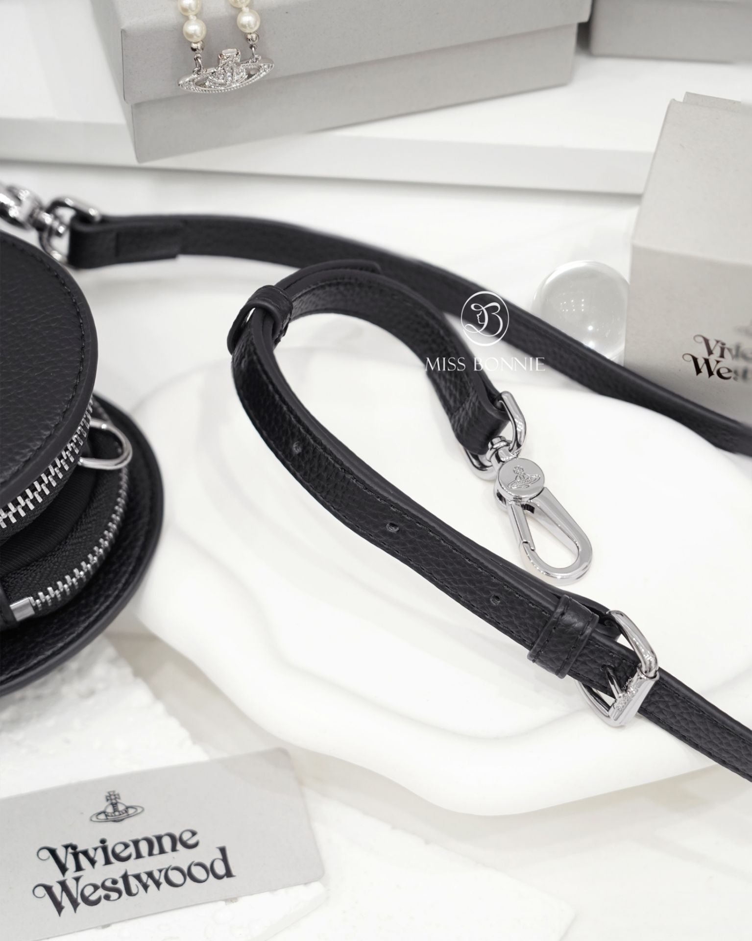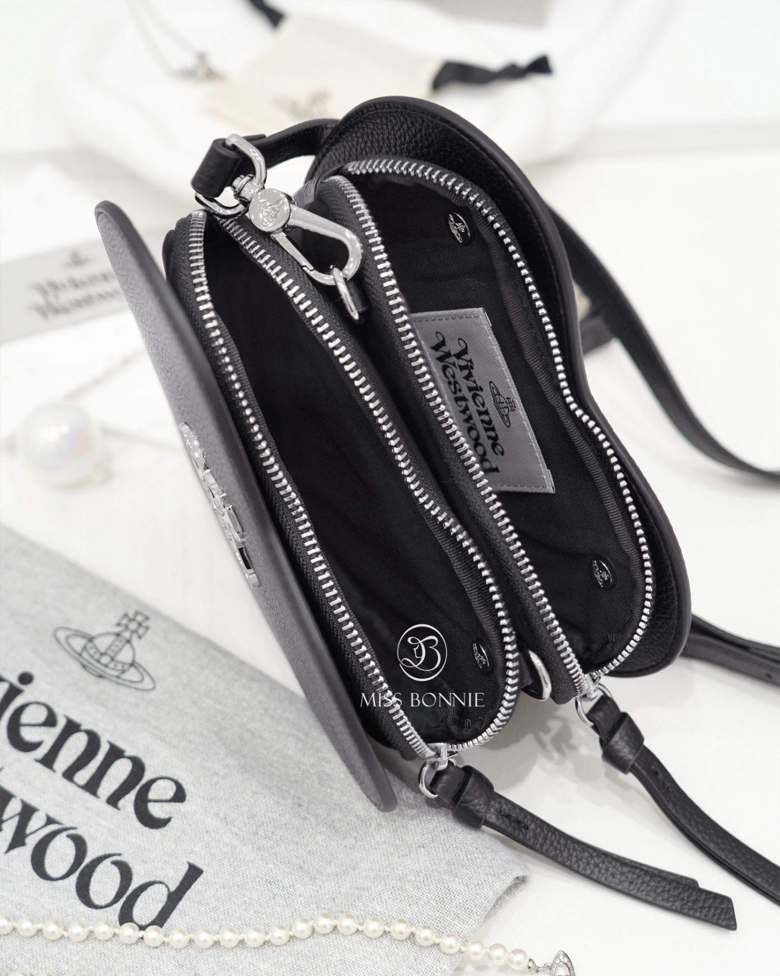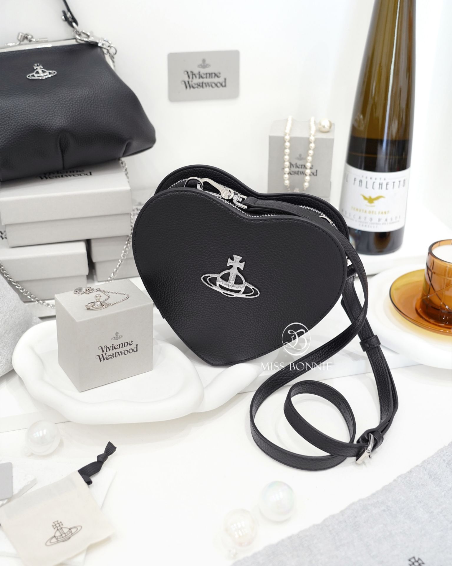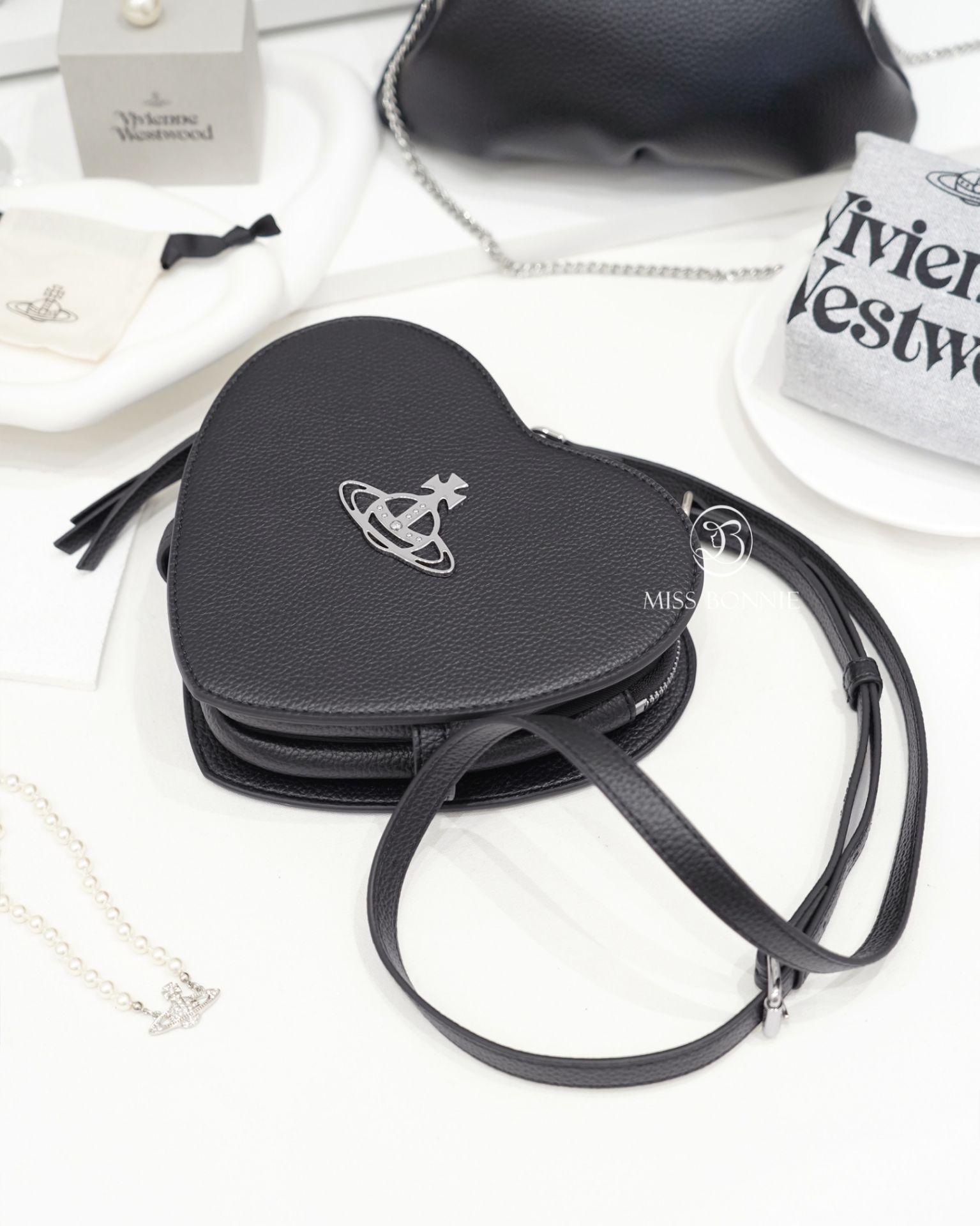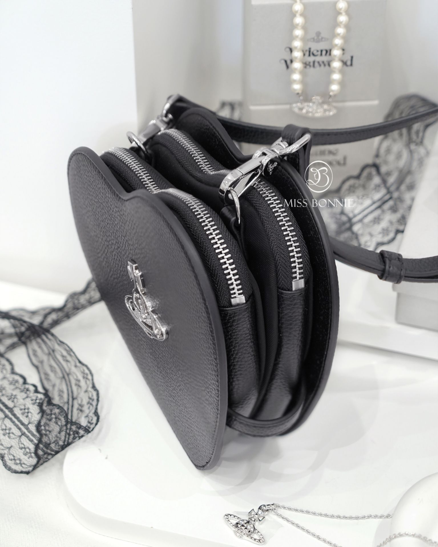 Vivienne Westwood經典荔枝紋雙層愛心包/黑色銀釦