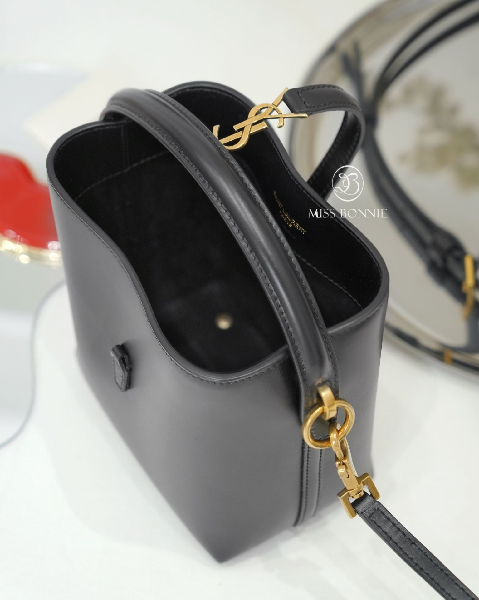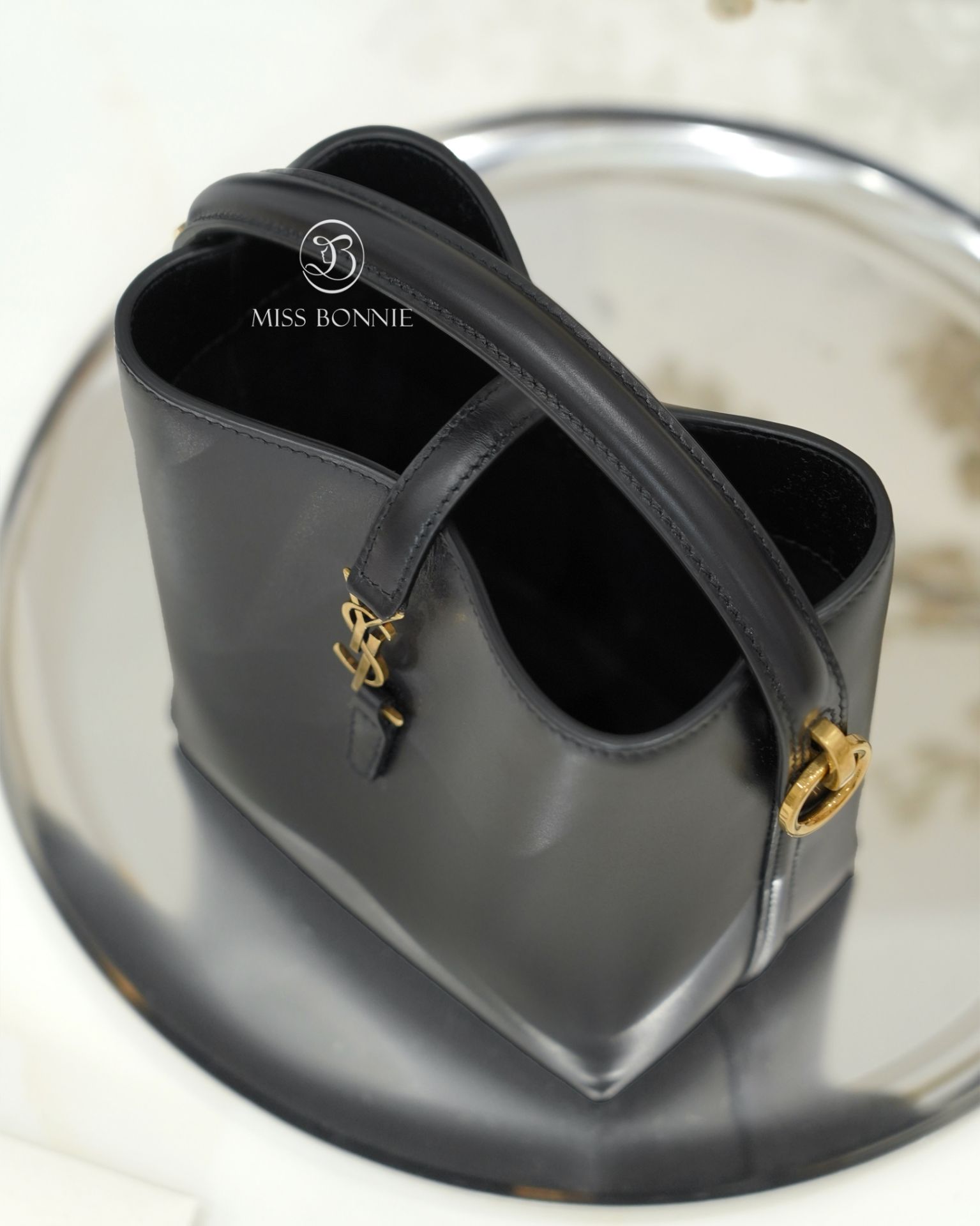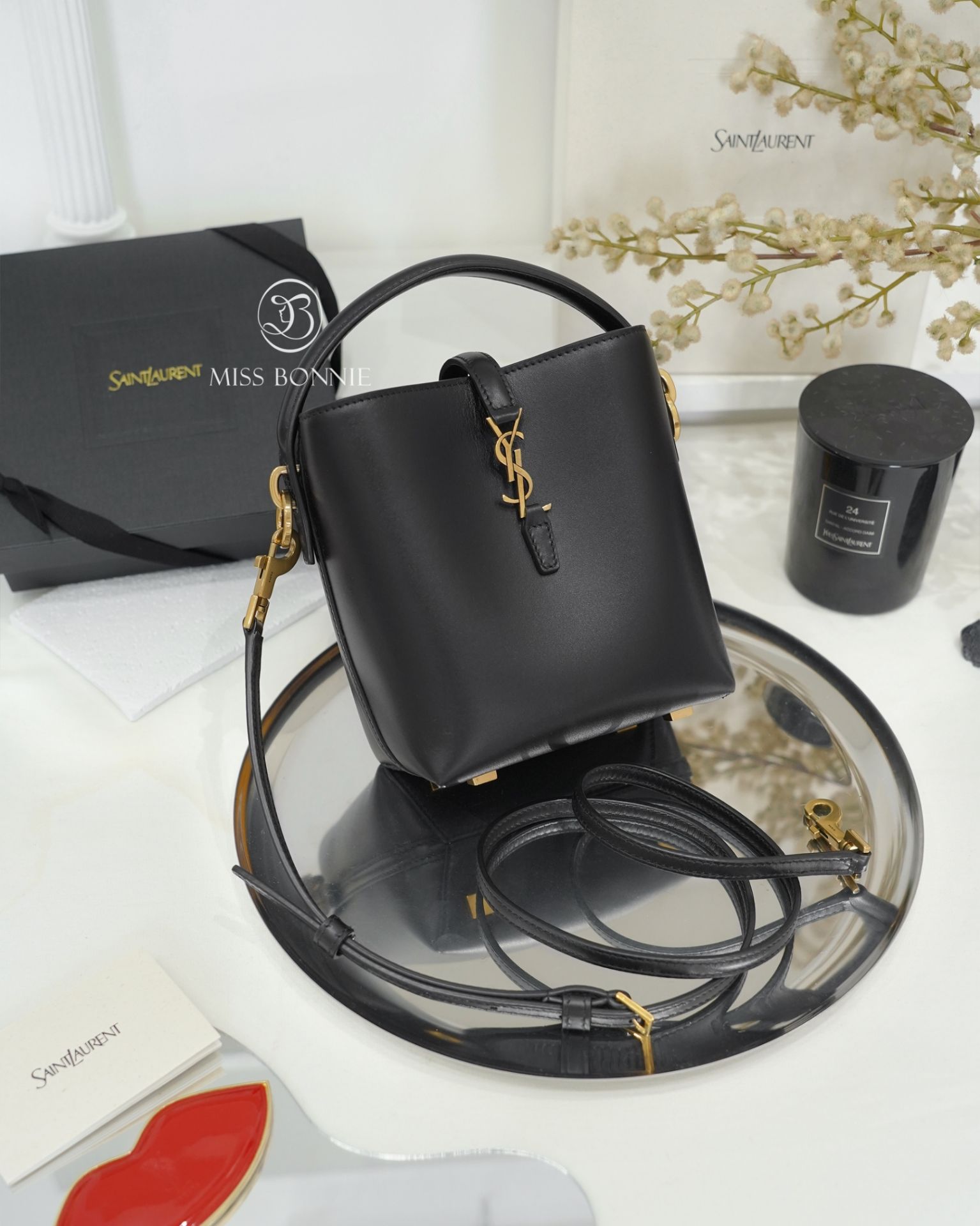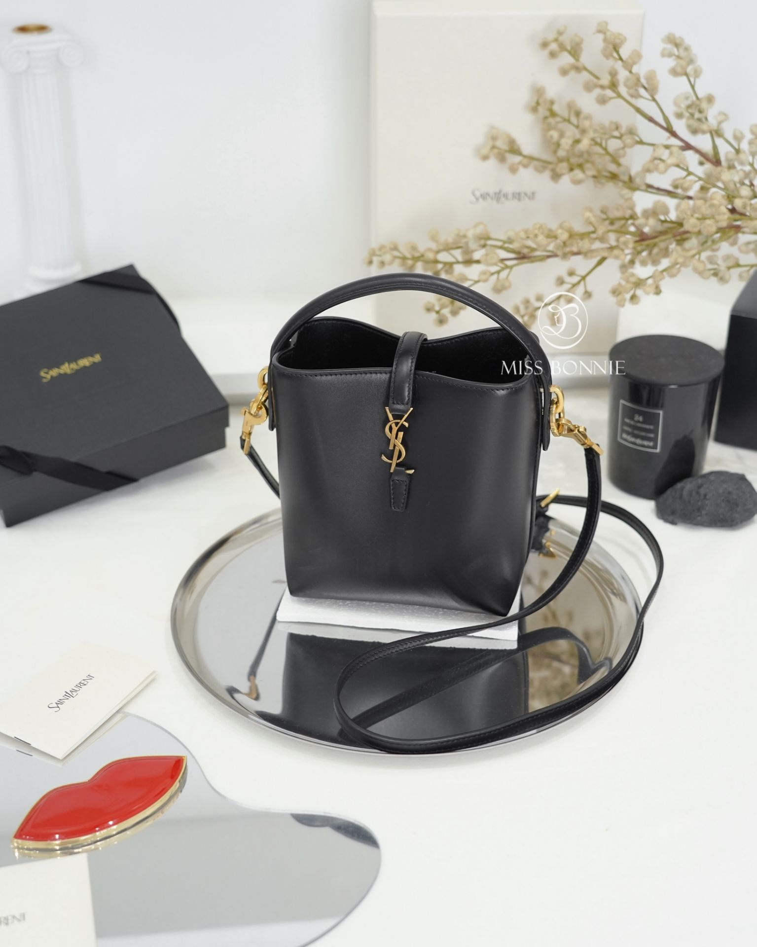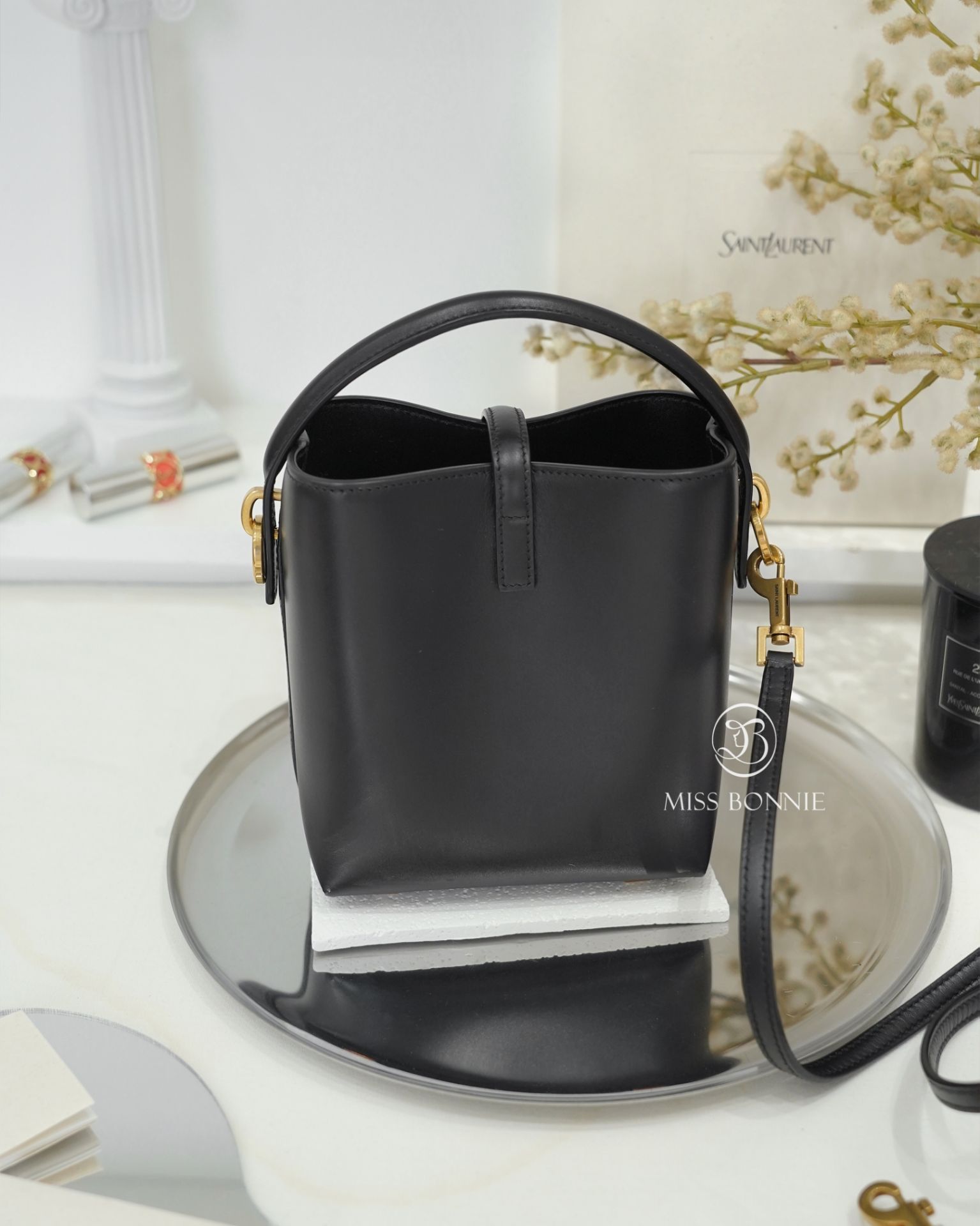 YSL LE 37 亮面皮革迷你水桶包-黑色/金釦(預購)